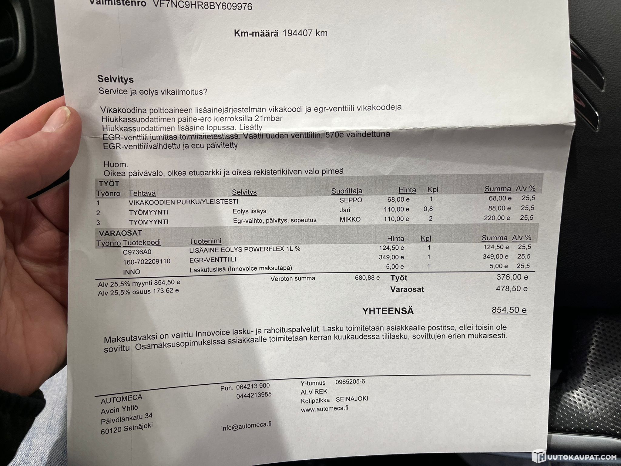 Vaihdettu äskettäin EGR ja juuri uusittu 1kpl polttoainesuuttimia