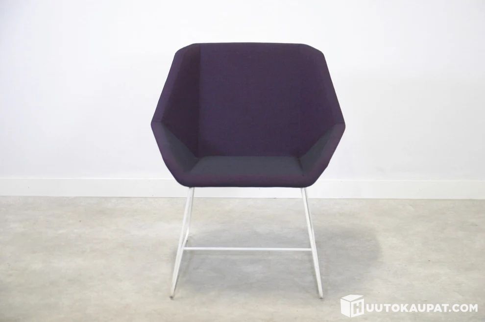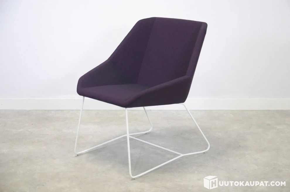 Kunto: Huolellisesti valikoitu käytetty toimistokaluste, violetti verhoilu siisti. Materiaali ja tarkemmat yksityiskohdat tarvittaessa saatavilla. Yhden nojatuolin hankkiminen säästää 196 kg luonnonvaroja ja ehkäisee 56 kg CO₂-päästöjä verrattuna uuden ostamiseen.