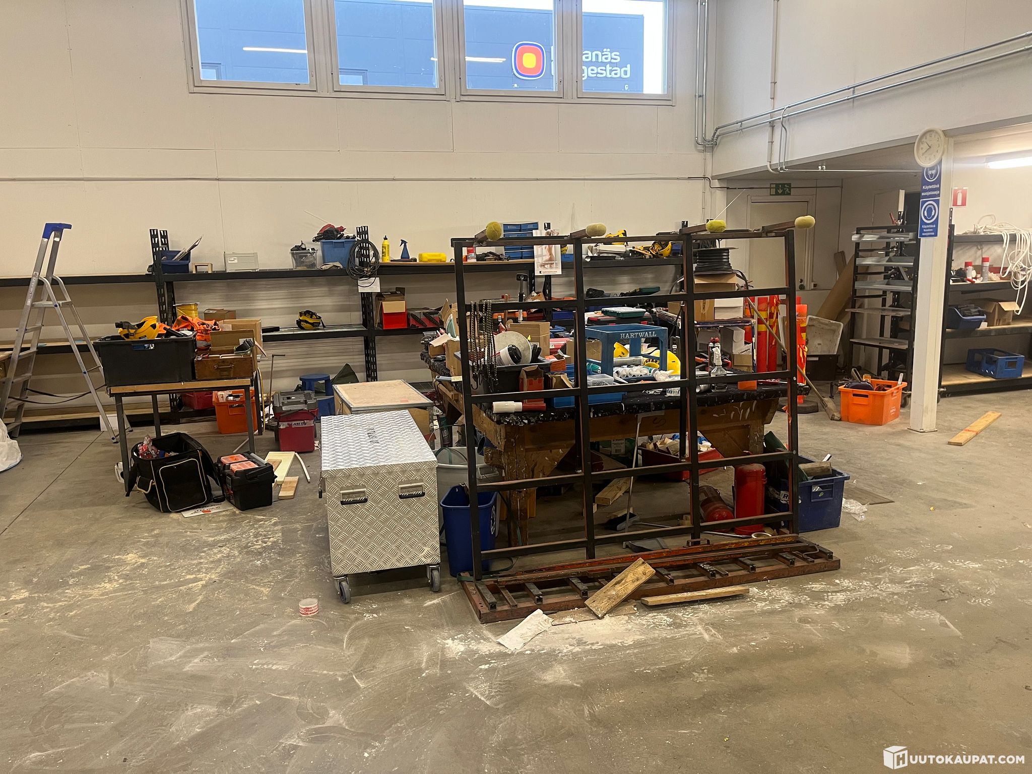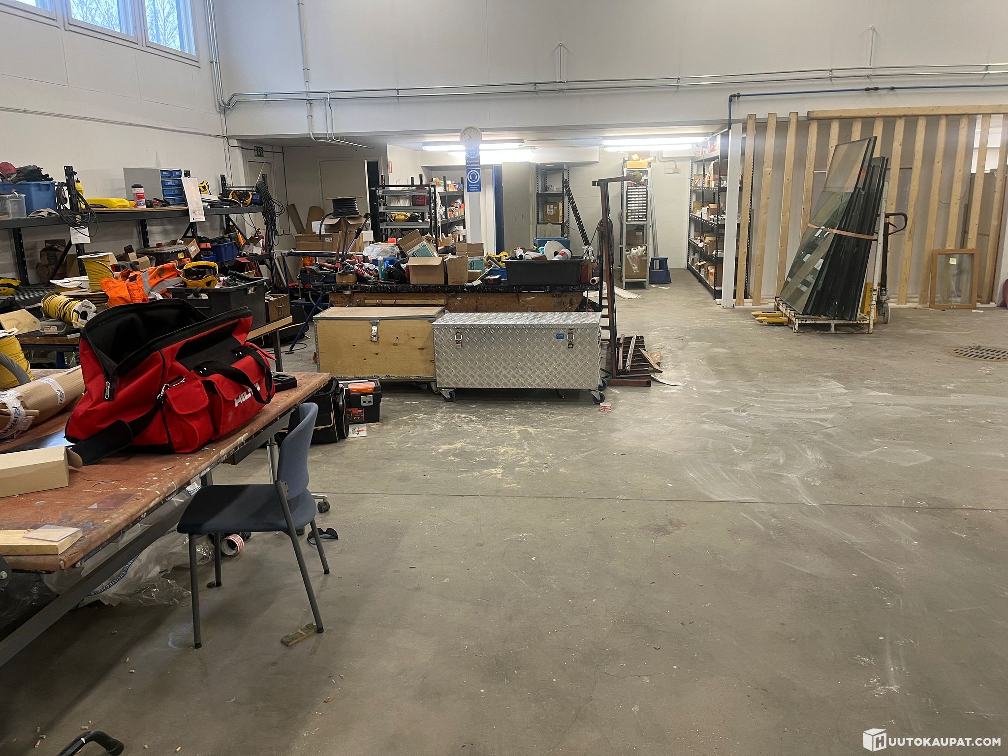KUVISSA NÄKYVÄ LOPPU OMAISUUS HYLLYINEEN KAAPPINEEN JA PÖYTINEEN
