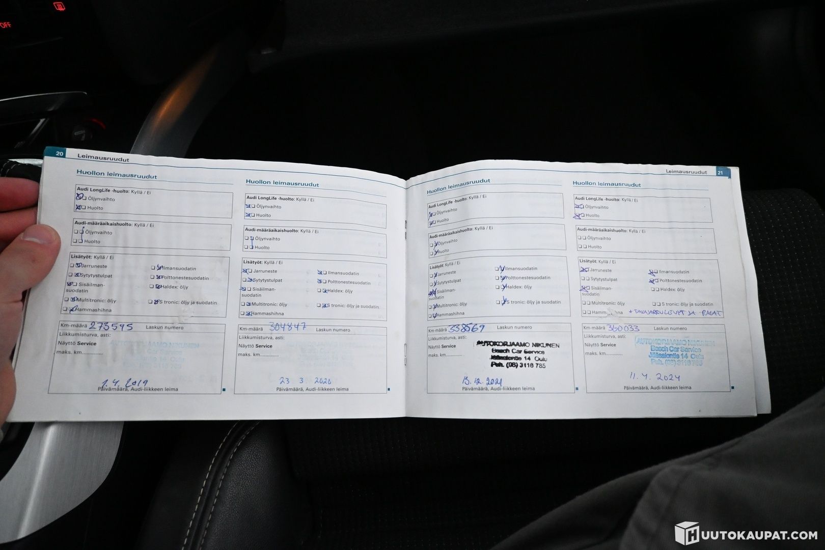 Autosta löytyy S-Line ulko- ja sisäpaketti eli normaalia sporttisempi ulkonäkö ja yksityiskohdat, esim. puolinahka urheiluistuimet. Lisäksi löytyy irroitettava vetokoukku, lohkolämmitin sisäpistokkeella ja edestä laadukkaat bi-xenon ajovalot! Autossa on myös kahdet renkaat alumiinivanteilla, talveksi hyväkuntoiset kitkarenkaat, kesärenkaat alkaa olla jo loppusuoralla, noin 2-3mm pintaa. Huoltokirja löytyy ja siellä hyvin merkintöjä, nyt alkaa huolto olla ajankohtainen.