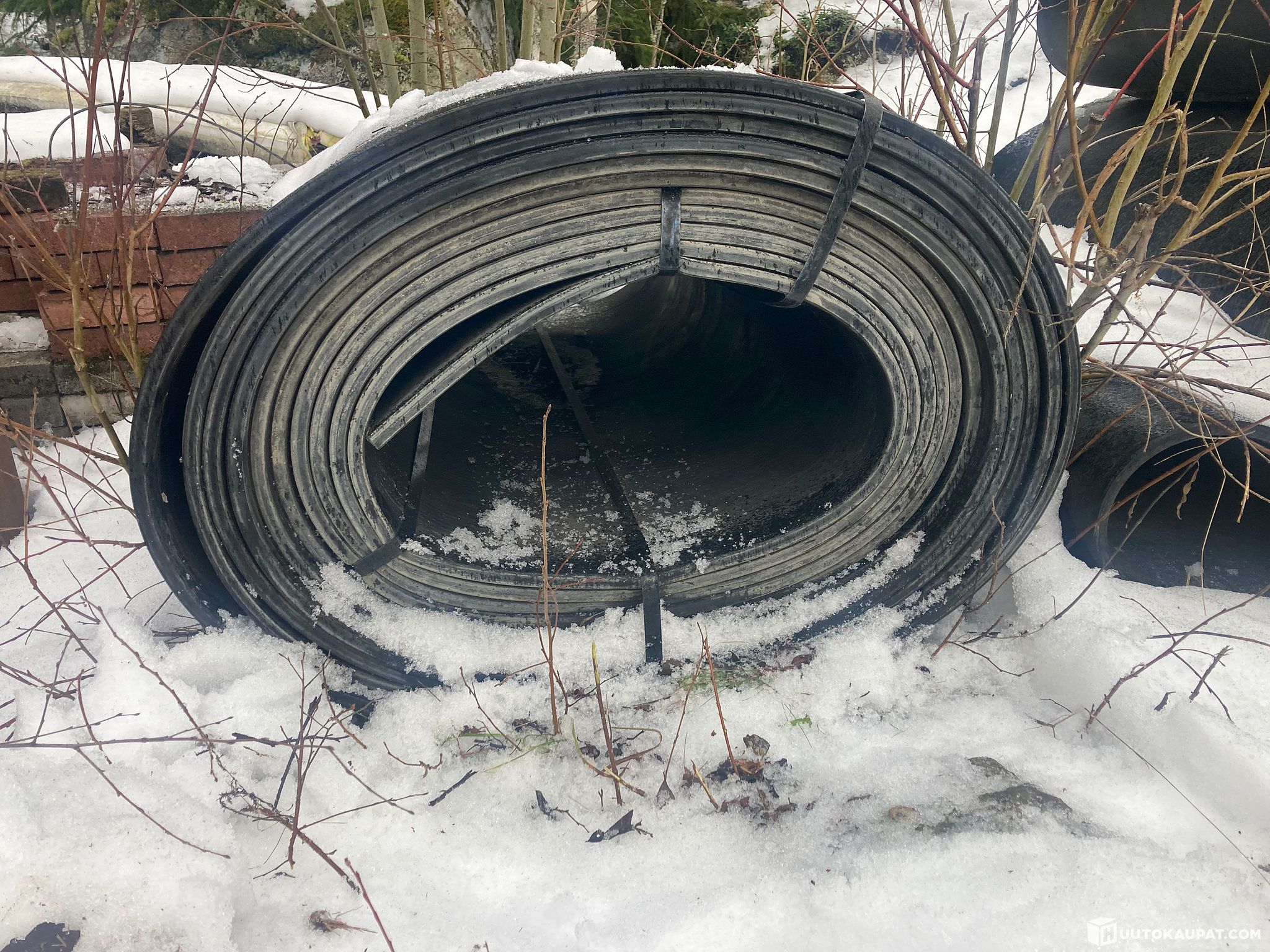 Käytössä ollutta vahvaa kuljetinhihnaa reilu 20 metrin rulla. Mitattu yli 20 m mutta ainakin se 20 metriä pitäisi olla. Leveys 140 cm ja paksuus 18 mm. Vaijereita vieri vieressä, painoa on rajusti.