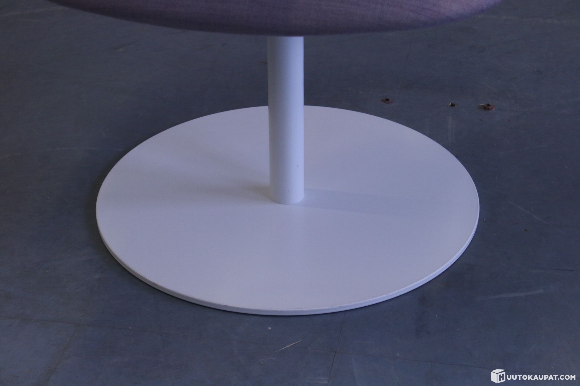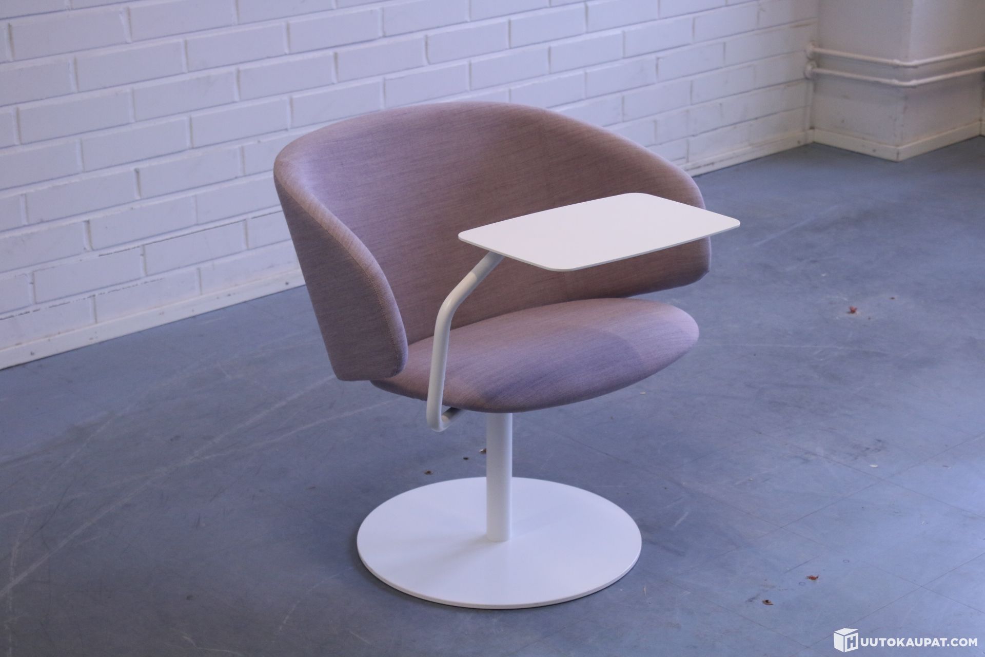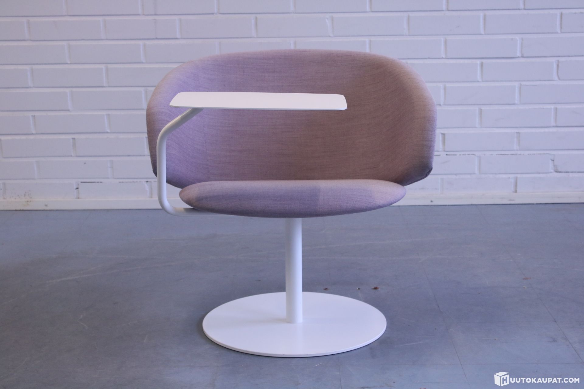 Tyylikäs Lila Martelan Sola-loungetuoli kääntyvällä tasolla. Laippajalka on pyörivä ja siinä on palautusmekanismi.