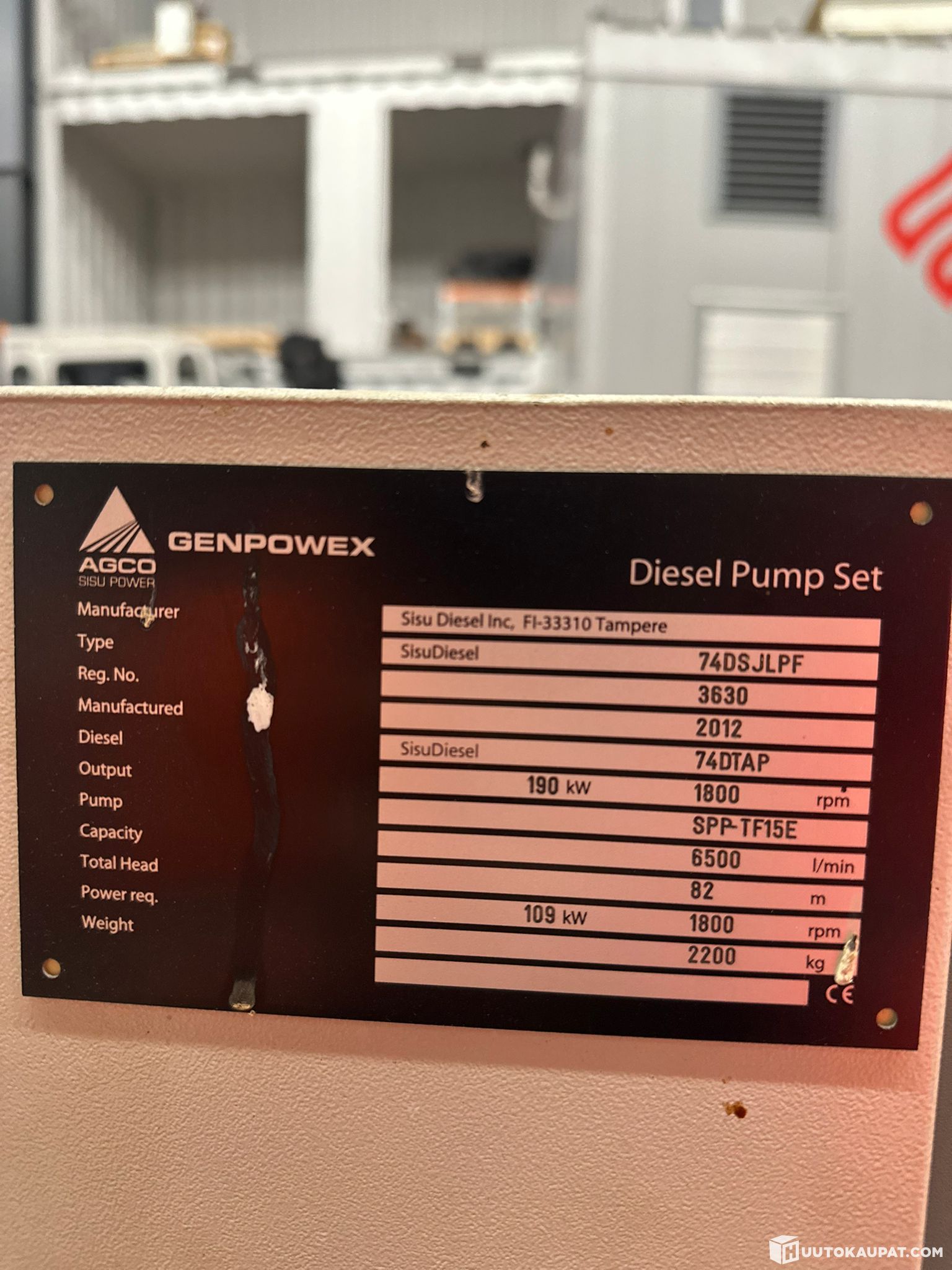 Myydään Sisu / AGCO Power dieselmoottori, joka on ollut aiemmin asennettuna pumppuyksikköön. Tehokas ja luotettava teollisuusdiesel, joka soveltuu hyvin myös venemoottoriksi tai muihin teollisiin käyttökohteisiin.