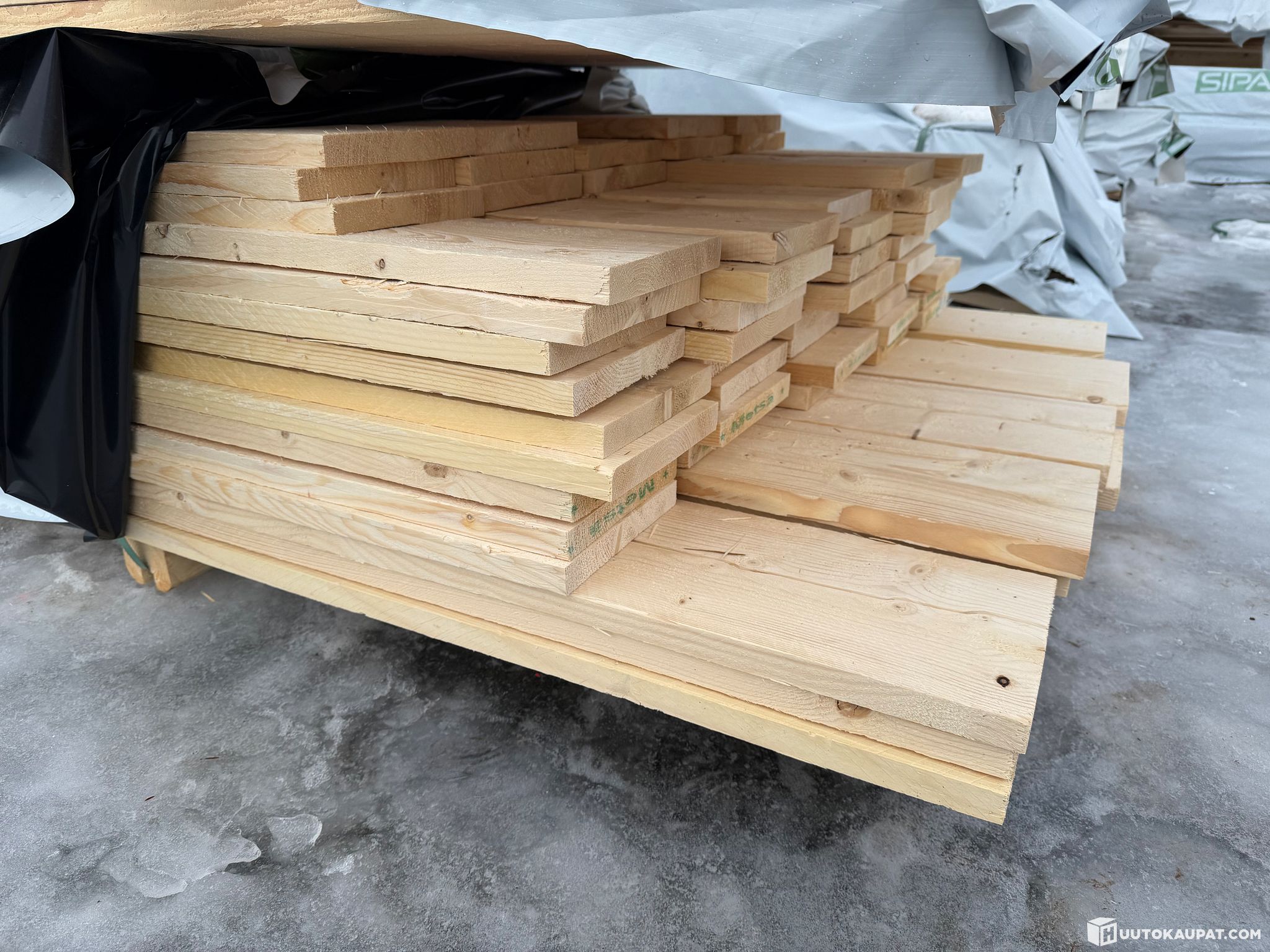 Monikäyttöistä sahatavaraa tehtaan paketissa.