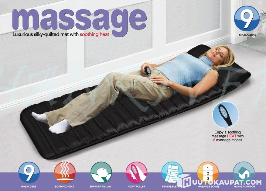 Hakusanat: hierontamatto, hierontalaite, rentoutusmatto, lämpömatto, selkähieronta, lihashuolto