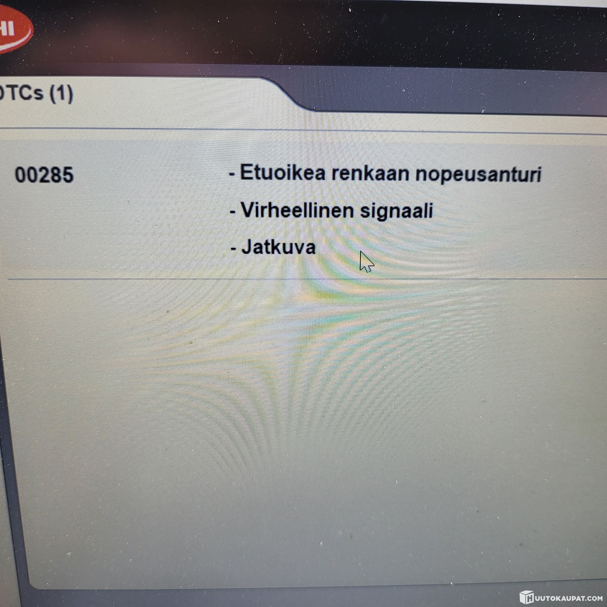 Välillä ajon aikana palaa luistoneston merkkivalo.”, testerillä katsottu nopeusanturi n. 30€.