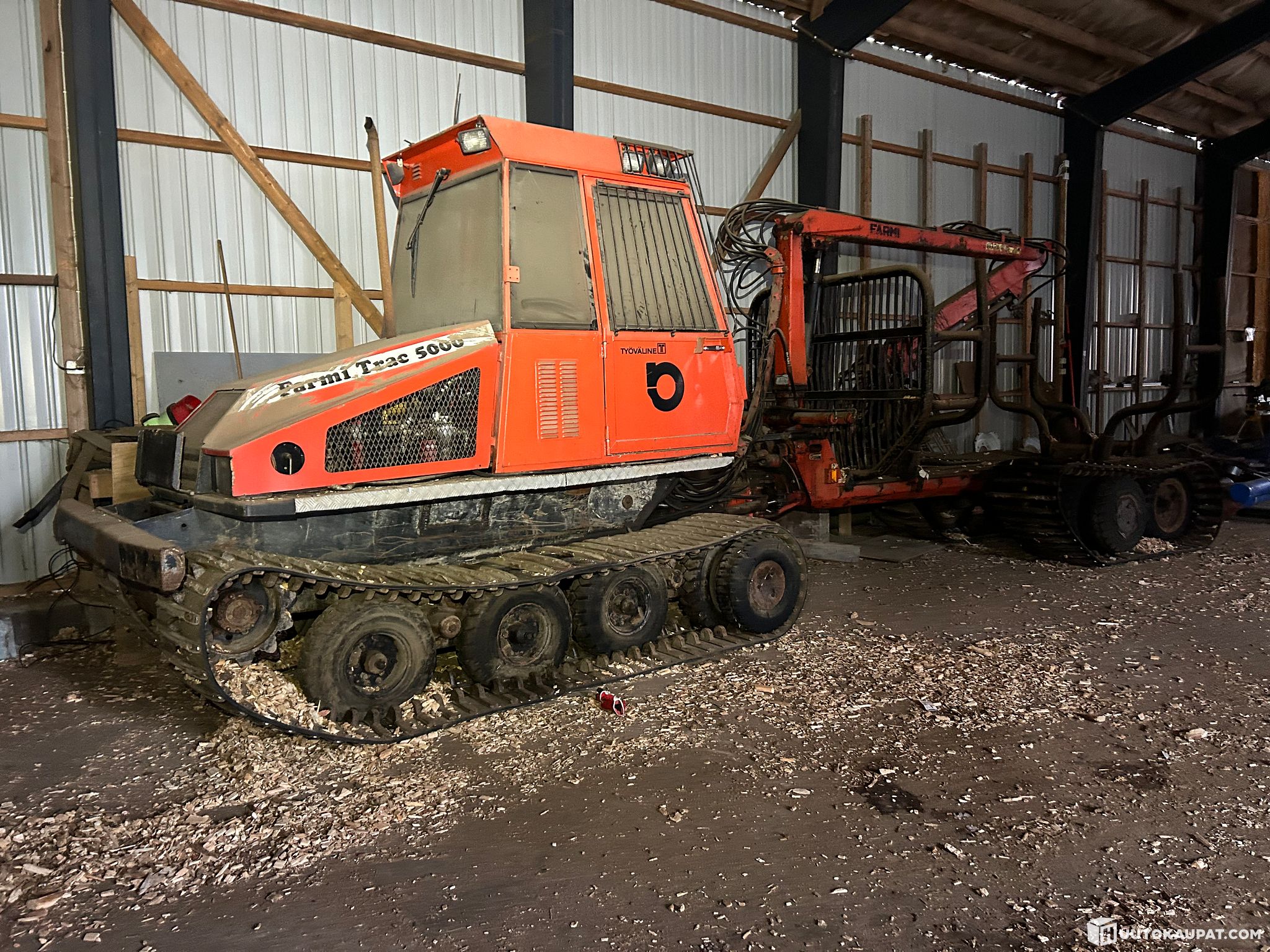 Myydään Farmi-trac 5000 pienmetsäkone. Kone on tällä hetkellä projekti kuntoinen. Kone on käynnistetty tänä keväänä, mutta huomattu, että takapään ajomoottori vuotaa öljyt ulos. Seissyt noin 15vuotta konehallissa. Tästä vähän ajettu kone projektiksi. Kyytiin nosto onnistuu kahdella pyöräkoneella.