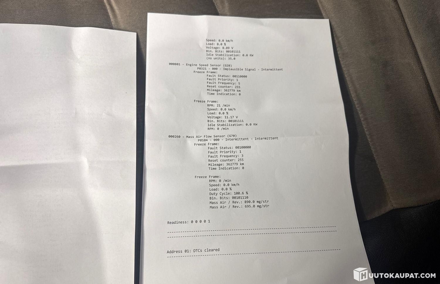Autosta korjaamolta vikadiagnoosi joka seuraavanlainen: