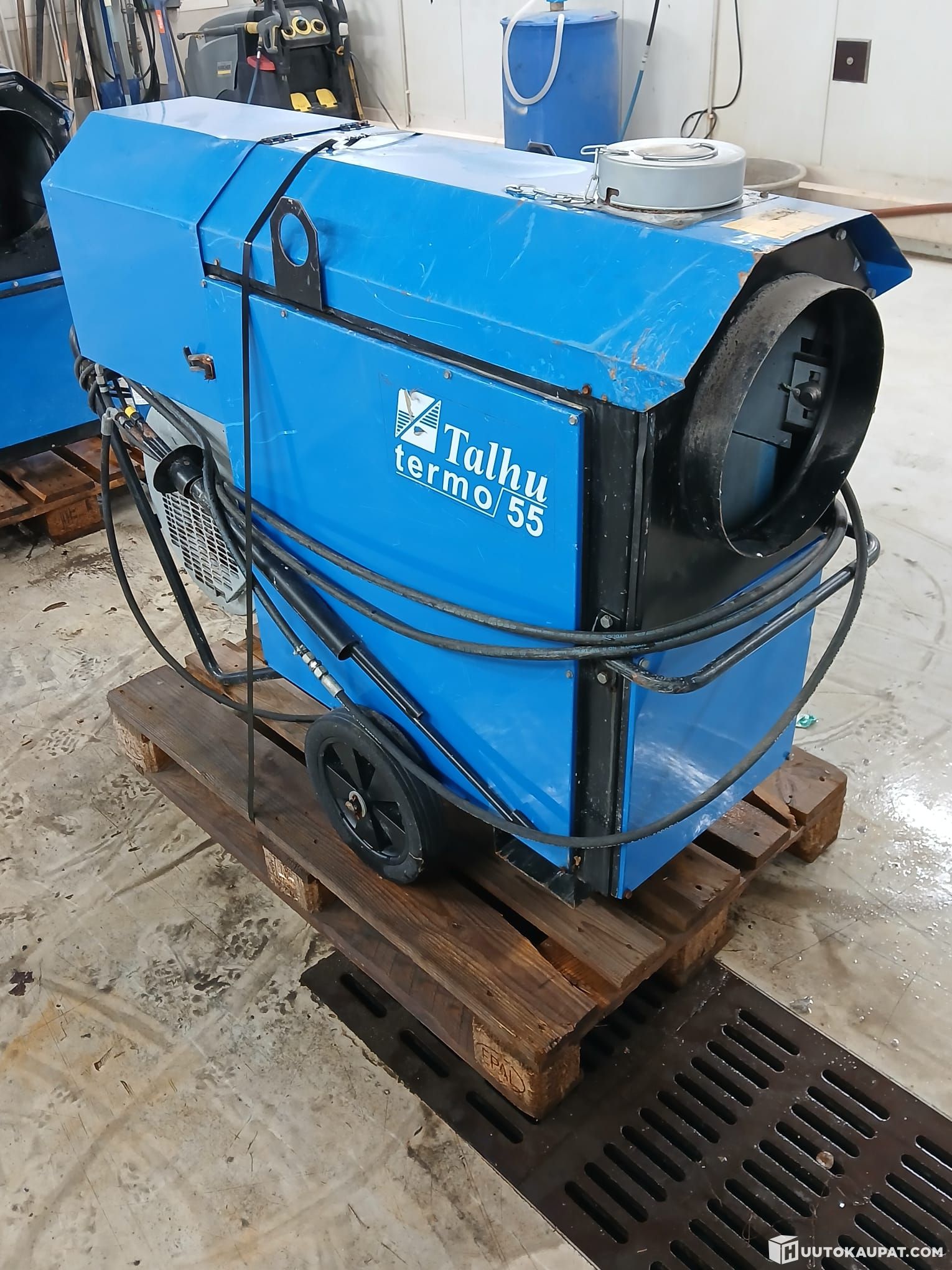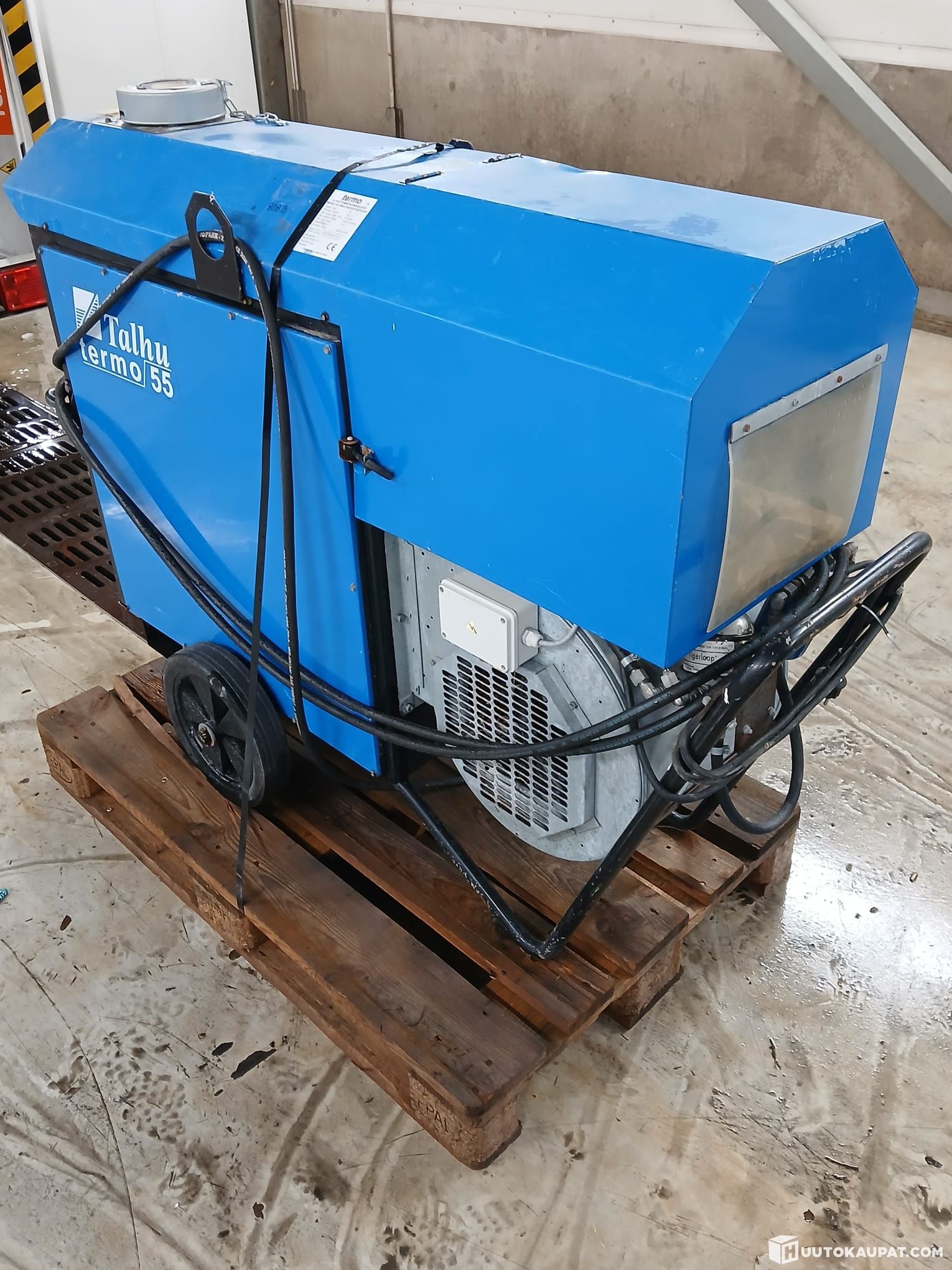 Tehokas 55 kW lämpöpuhallin. Pari vuotta seissyt varastossa, joten toiminta takuuta ei anneta.