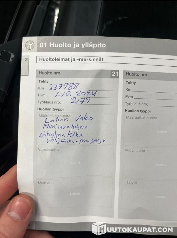 Huoltokirja löytyy ks. huoltomerkinnät kuvista.