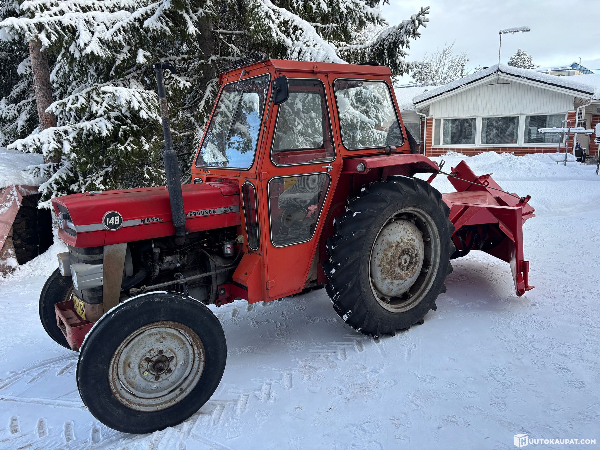 Ikäisekseen todella hienossa kunnossa oleva massikka jonka mukana luultavastikkin alatalkkarin tekemä linko joka laakeroitu ja maalattu kunnolla pari vuotta sitten. Lisäksi mukaan ketjut niin riittää pito töppösissä.