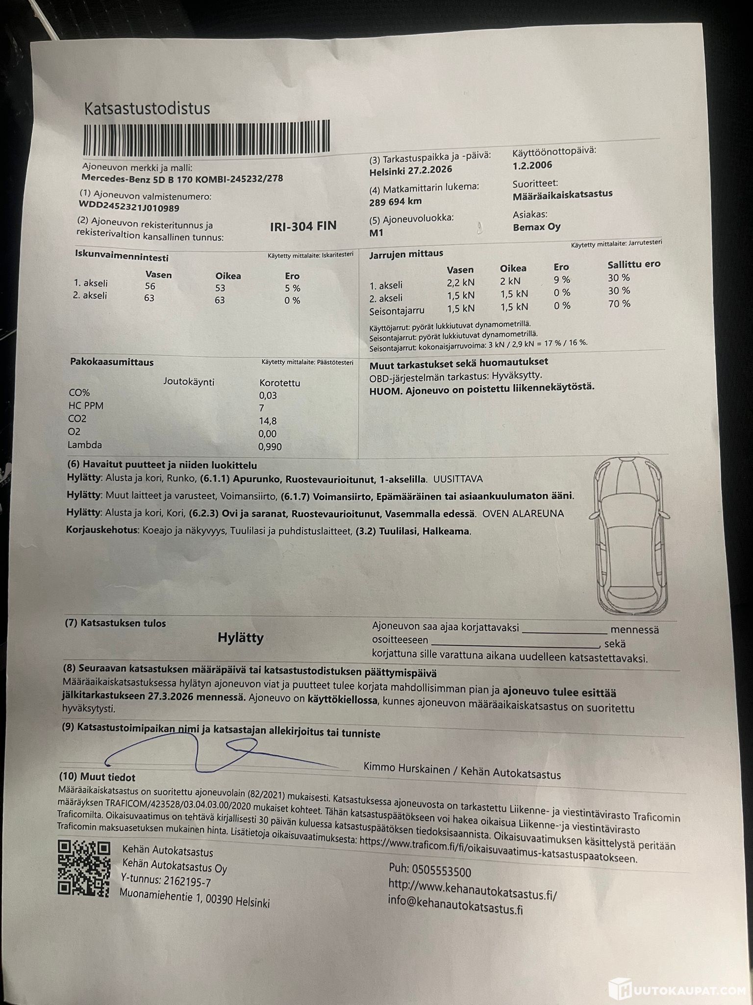Auto ei ole ollut toimestamme teknisessä kuntotarkastuksessa eikä kaikkien varusteiden toimivuutta ole testattu. Siinä saattaa olla piileviä vikoja, joita koeajolla emme havainneet. Autoon on mahdollista tulla tutustumaan tarkemmin ennen sitovan huudon tekemistä. Sovithan tulostasi etukäteen, kiitos.