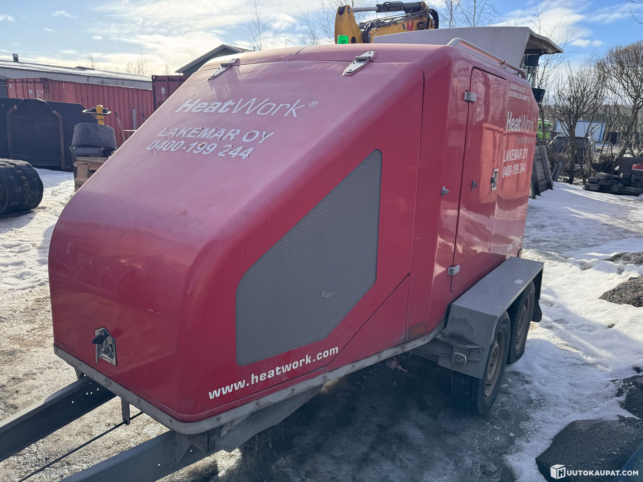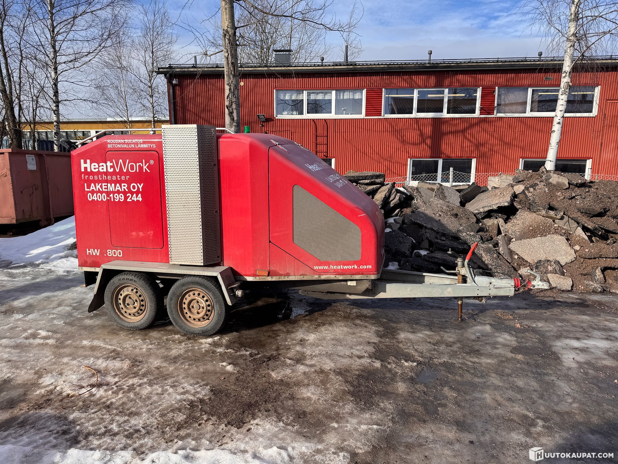 Kuvien mukainen Heatwork 1800 roudansulatusvaunu. Toimii tällä hetkellä vain verkkovirralla (240V), tai ulkopuolisella aggrekaatilla. Oma Aggrekaatti sammunut kesken käytön, eikä lähde enää käyntiin (Aggrekaatissa käyttötunteja n.8100)
