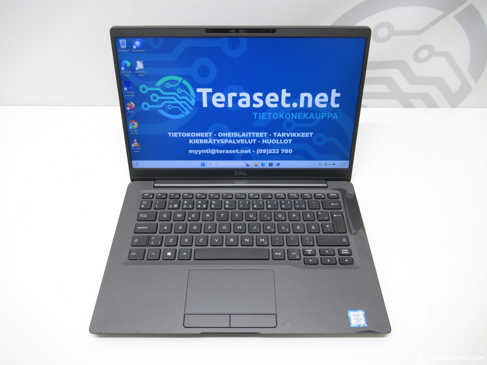Myydään yrityskäytöstä palautunut ja tietoturvallisesti uudelleenasennettu Dell Latitude 7400 läppäri, pykälän uudempi kuin myyntimenestyksemme Latitude 7490. Koneeseen on juuri asennettu puhdas ja tuore Windows 11 Pro käyttöjärjestelmä, sekä pieni valikoima ilmaisohjelmia. Mukana myös 3 kk kokeilujakso F-Secure Total ohjelmistopakettiin.