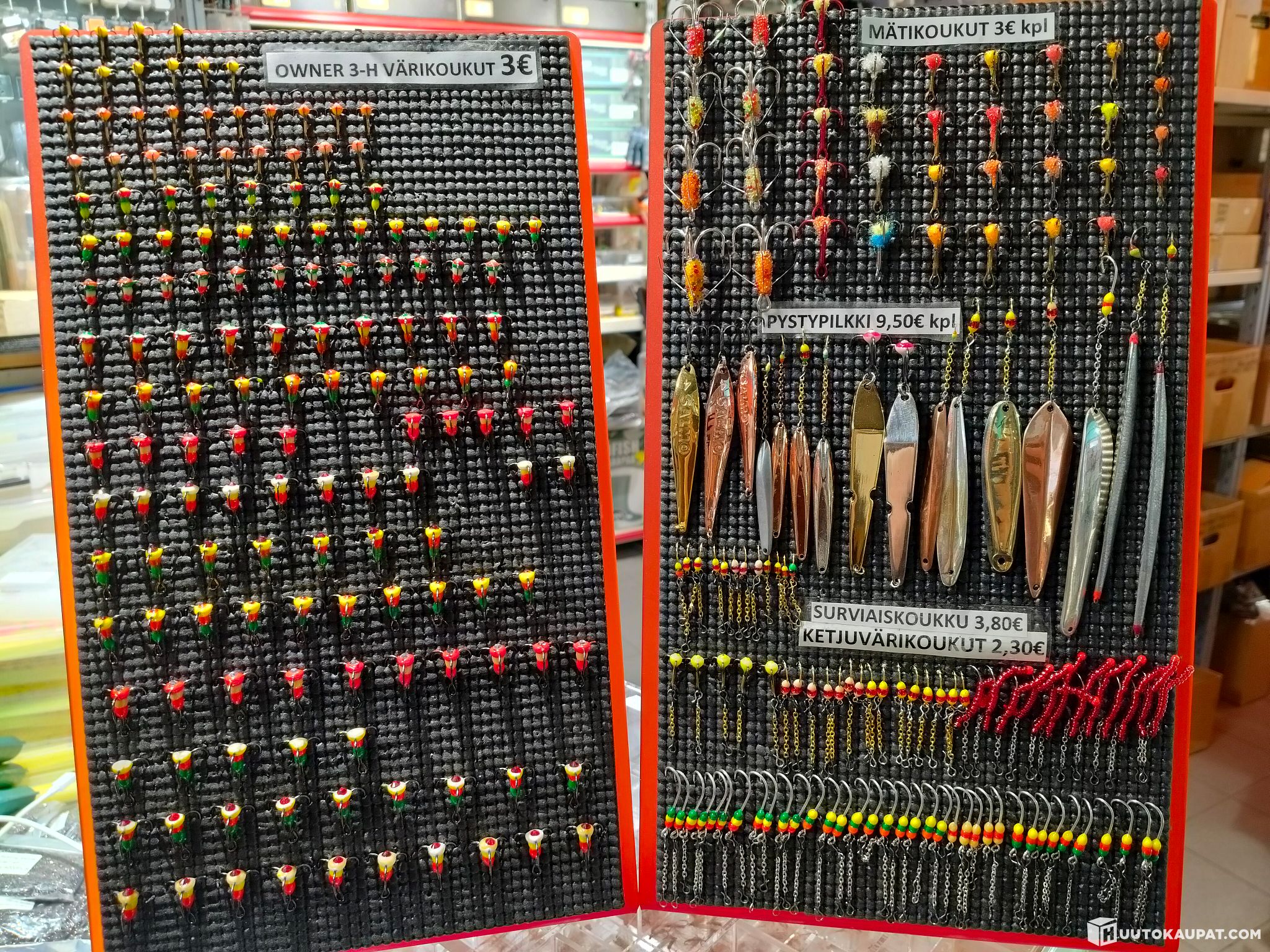 Huippuerä väri-, mäti- ja surviaiskoukkuja sekä pystypilkkejä. Yhteensä 286 kpl.