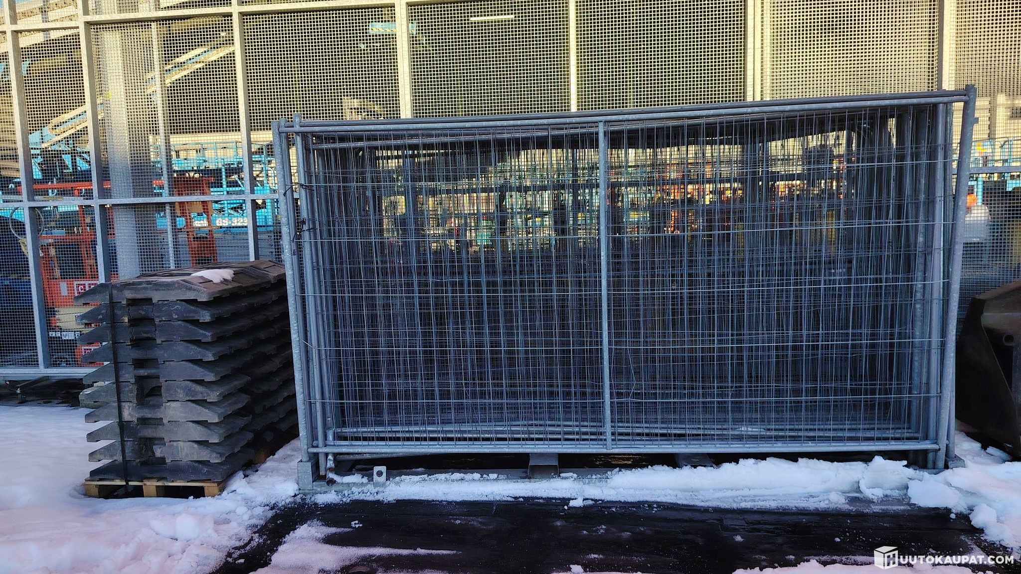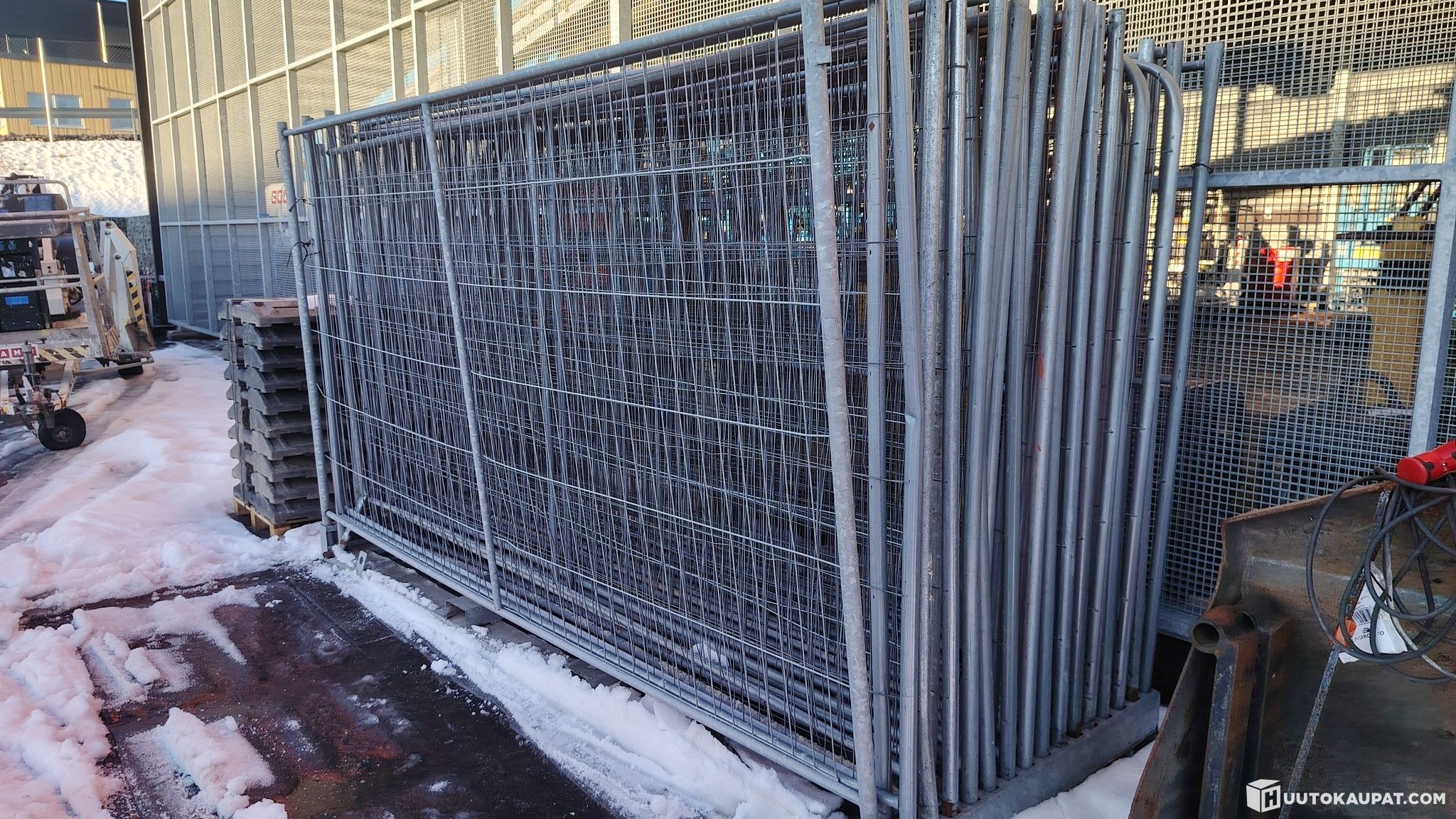 Korjattavaksi 30kpl Työmaa-aita 2,0 x 3,5 m + Kuljetuskehikko.