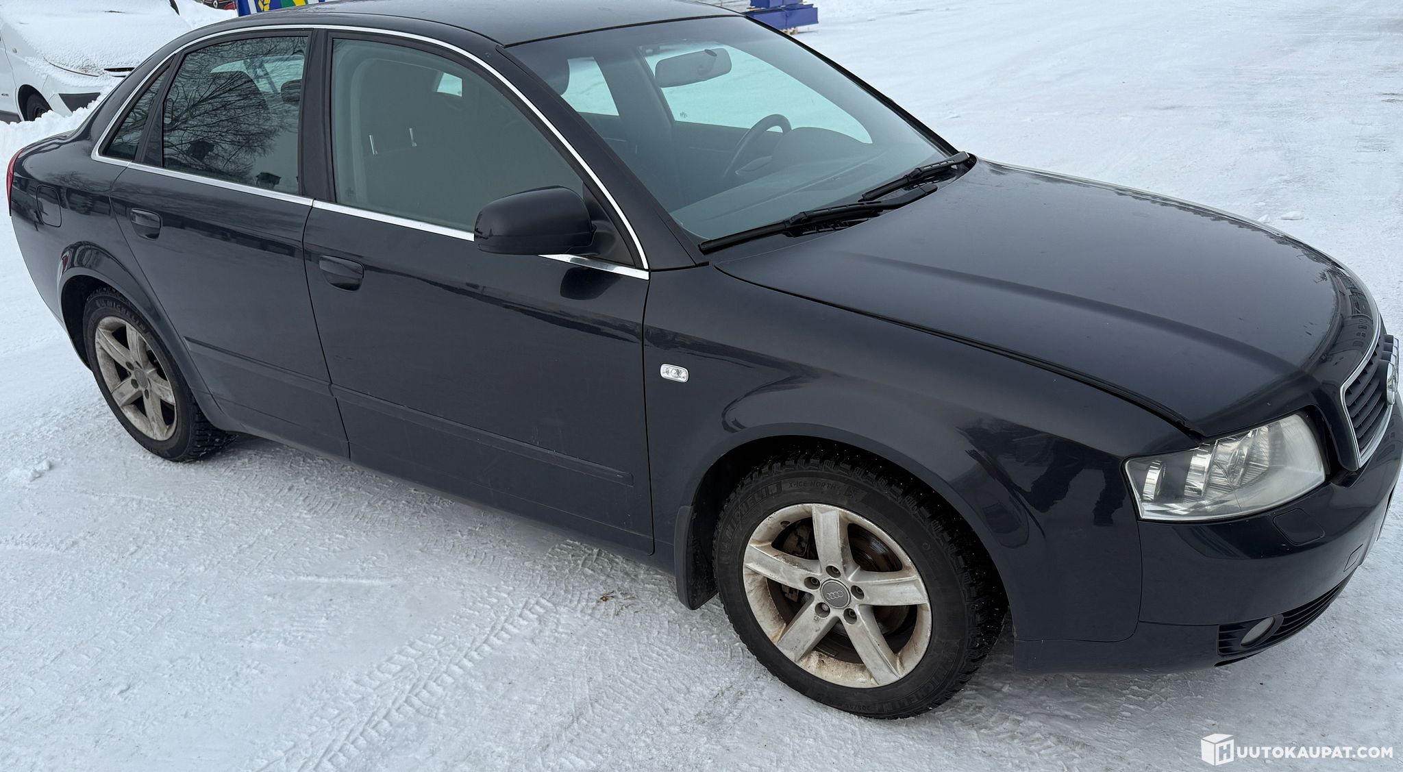 Kuvissa alla olevat nastarenkaat ei kuulu kauppaan vaan auton omat näkyvät kuvissa, niissä niukasti nastoja.