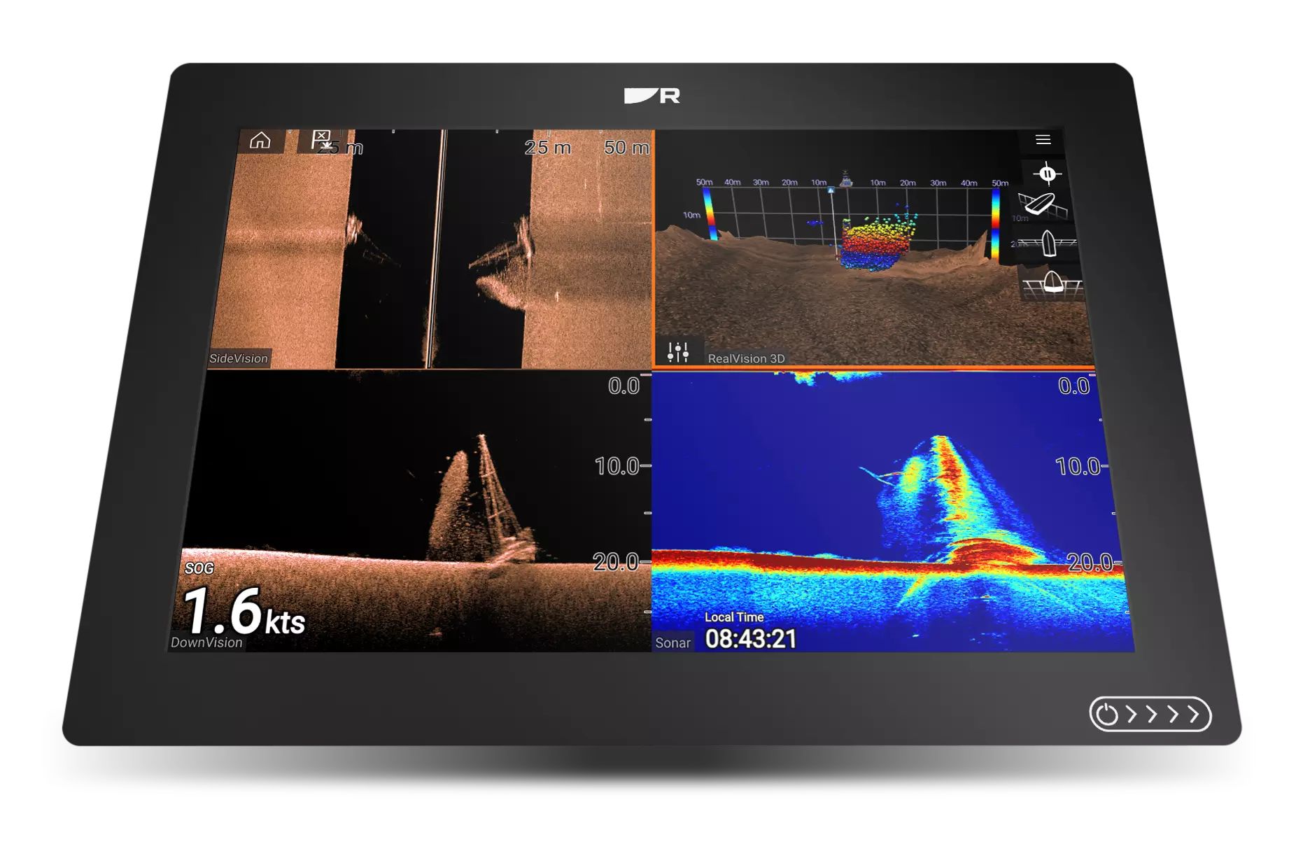 Olet todella päällikkö käyttäessäsi Axiom+ RV:tä edistyneellä LightHouse-käyttöjärjestelmällä, joka helpottaa navigointia ja kalojen löytämistä CHRIP SideVision, DownVision ja RealVision 3D -kaikukanavien sekä perinteisen CHIRP kalakaiun avulla.