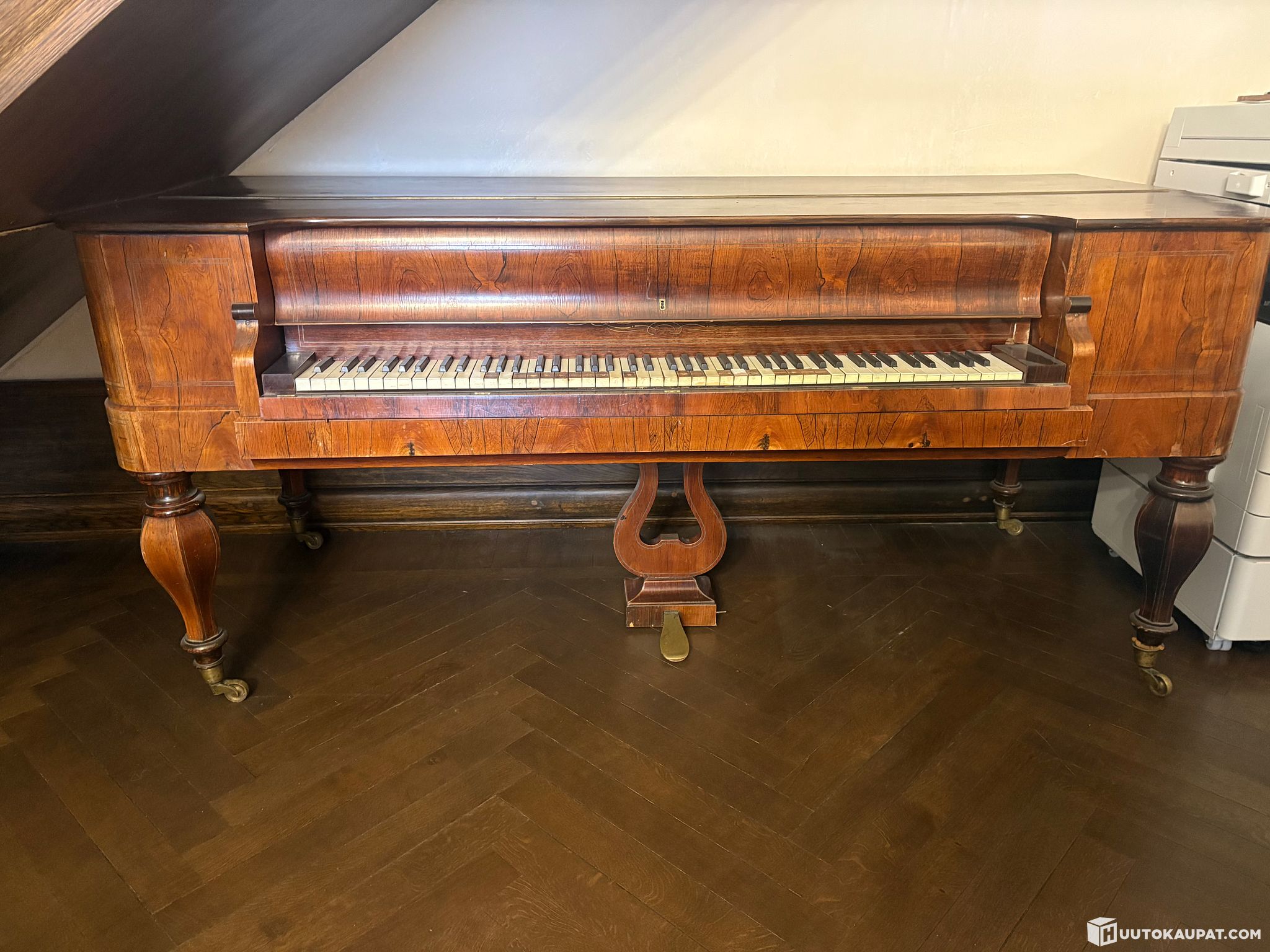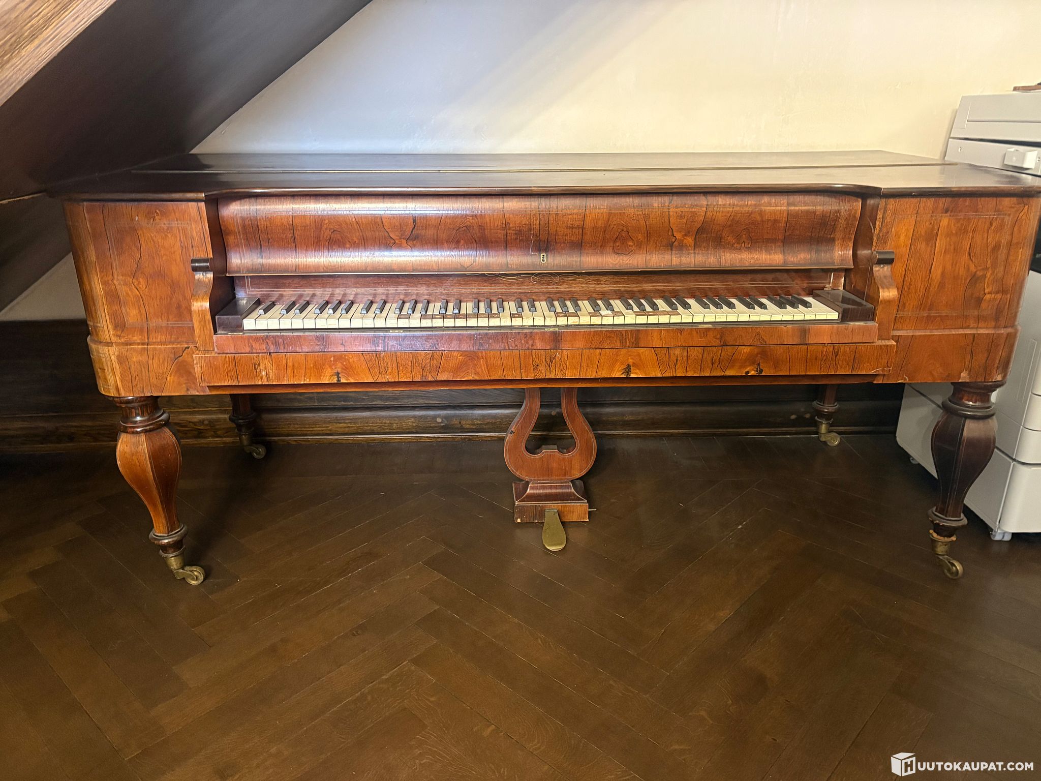 Piano on todella vanha ja soittokuntoa tarvitsee varmasti parantaa ja muutamasta koskettimesta puuttuu muutama valkoinen osa.