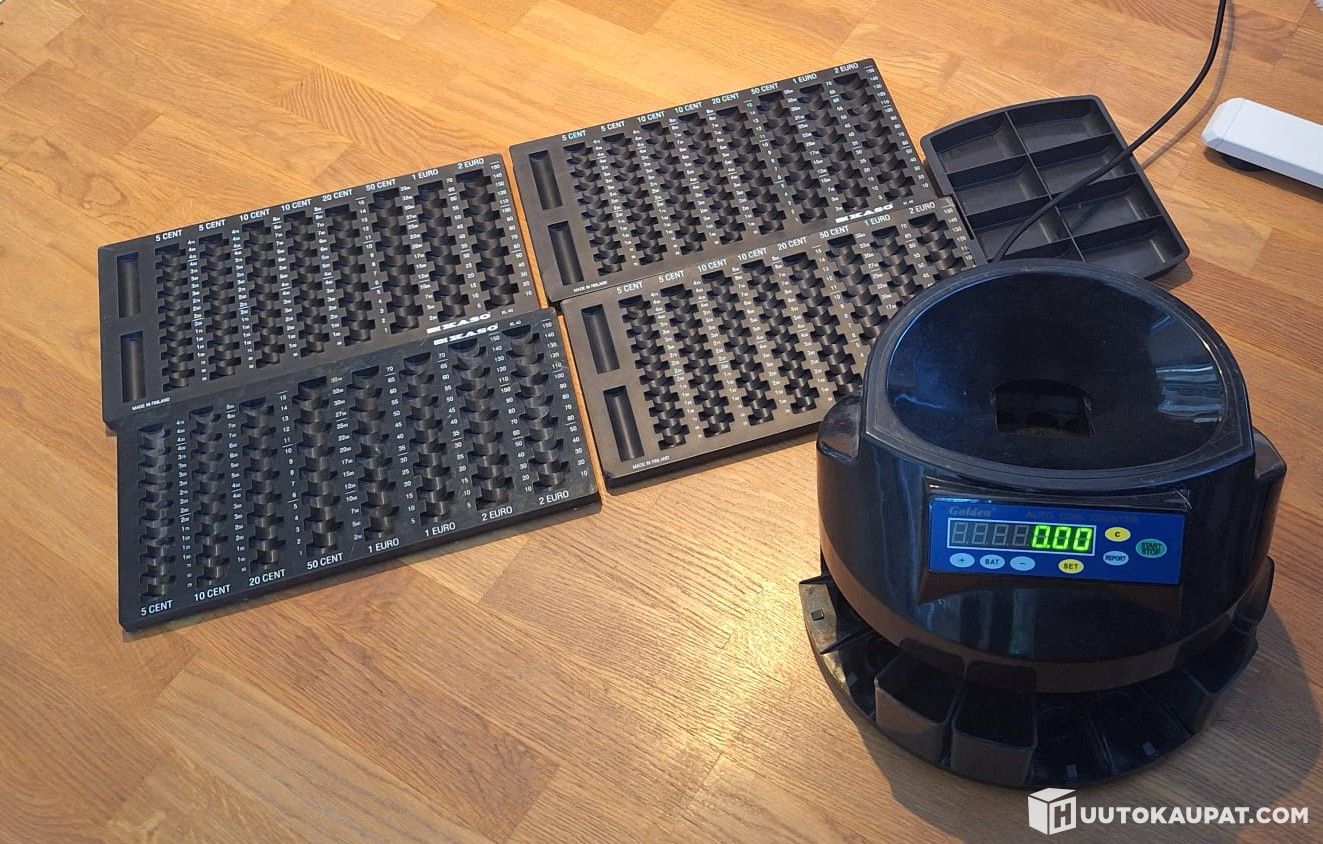 Laite on varustettu erillisillä kolikkolevyillä eri kolikkokokojen käsittelyä varten.