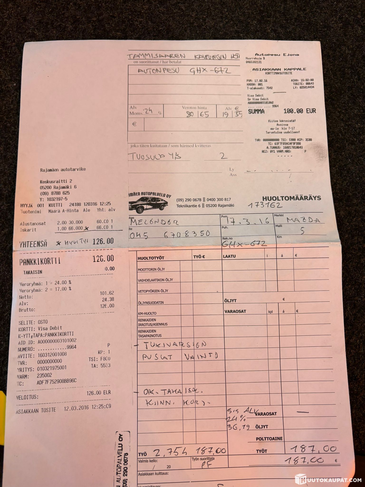-Autosta löytyy muutama huoltokuitti.