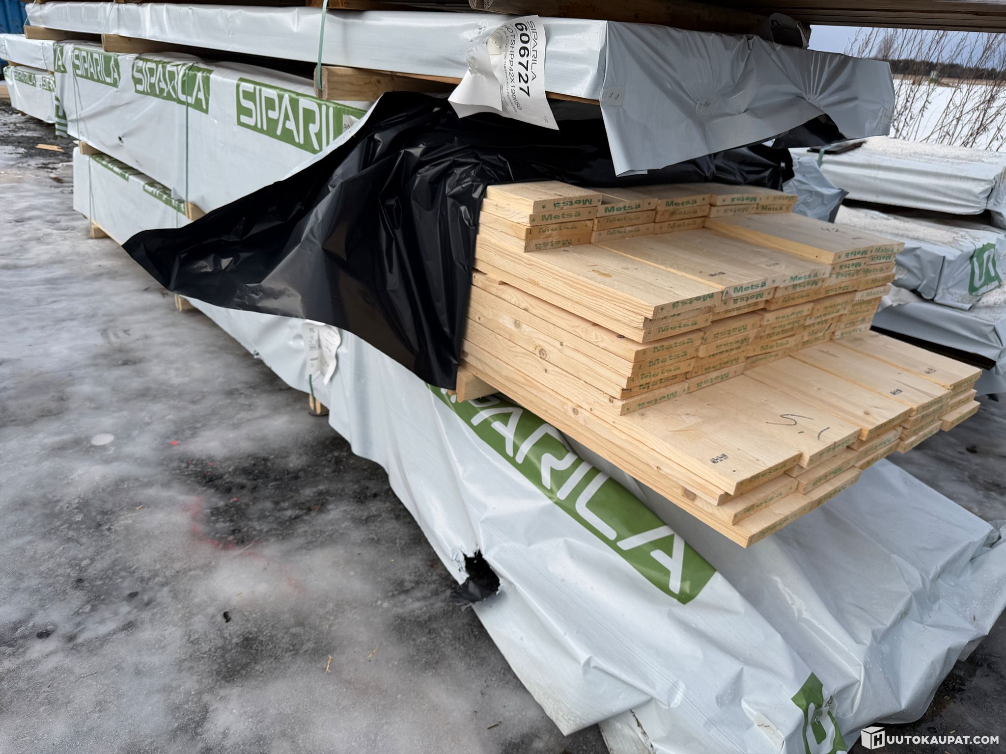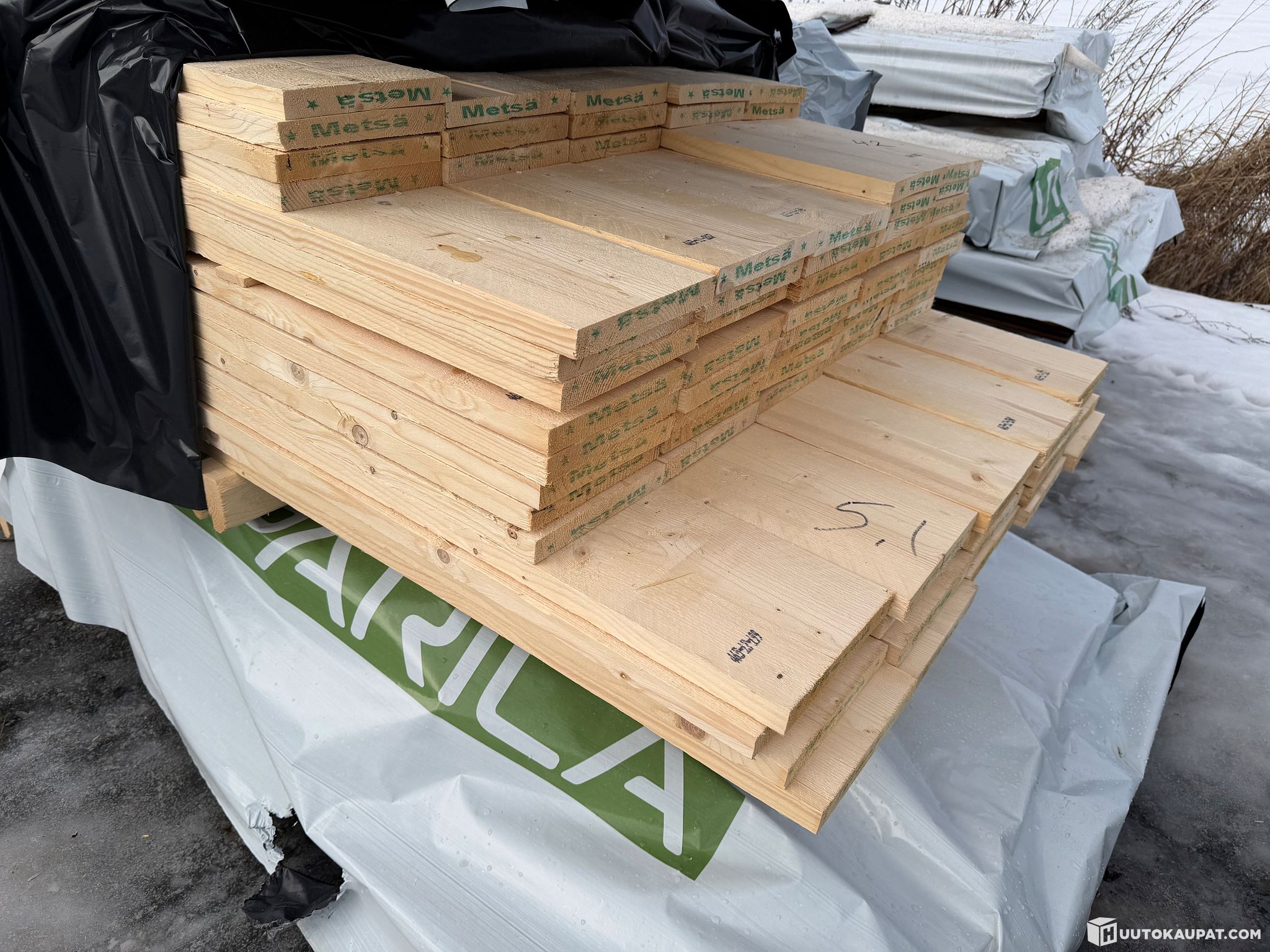 Monikäyttöistä sahatavaraa tehtaan paketissa.