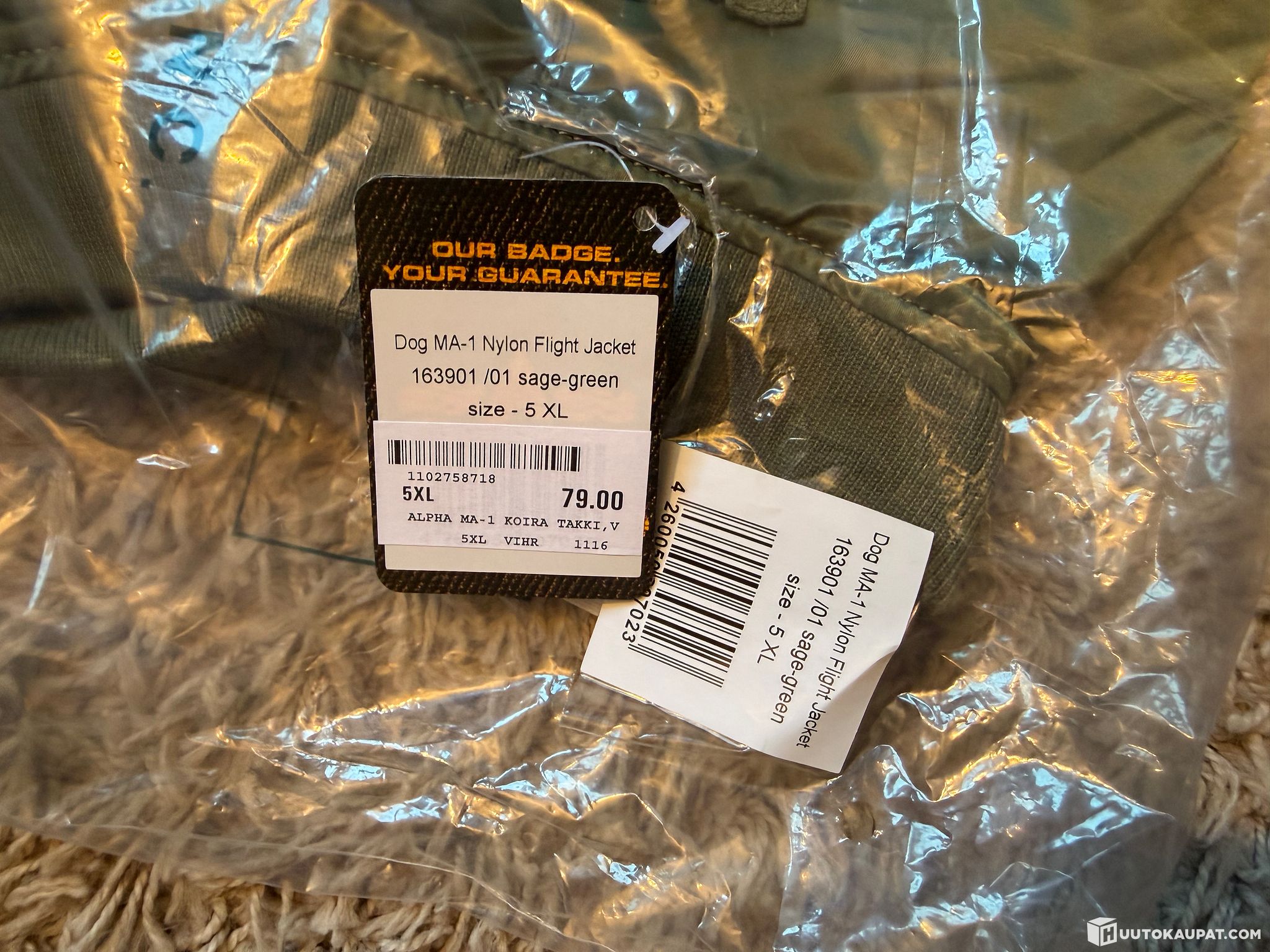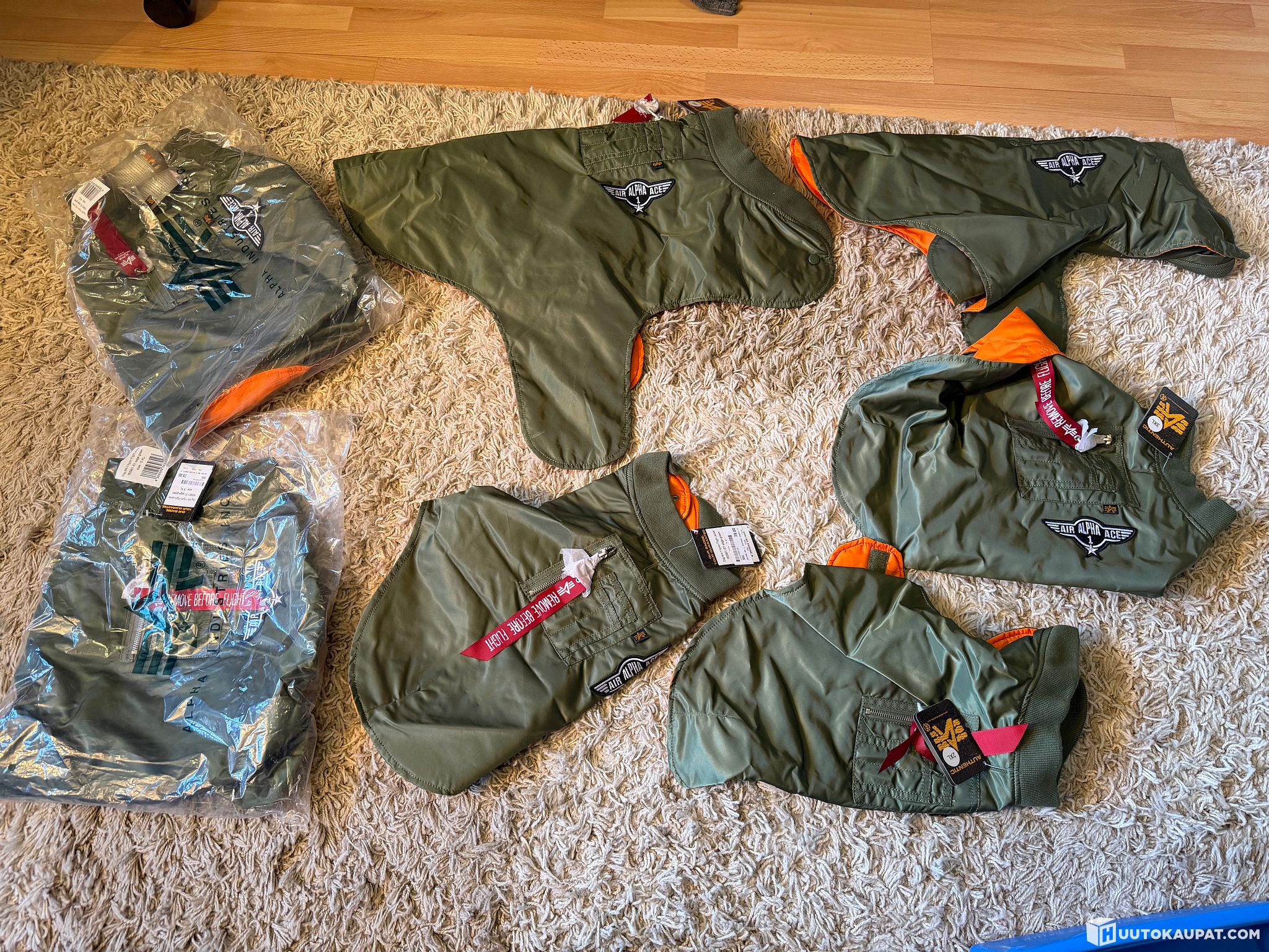 7kpl käyttämättömiä koirien Alpha Industriesin pilottitakkeja