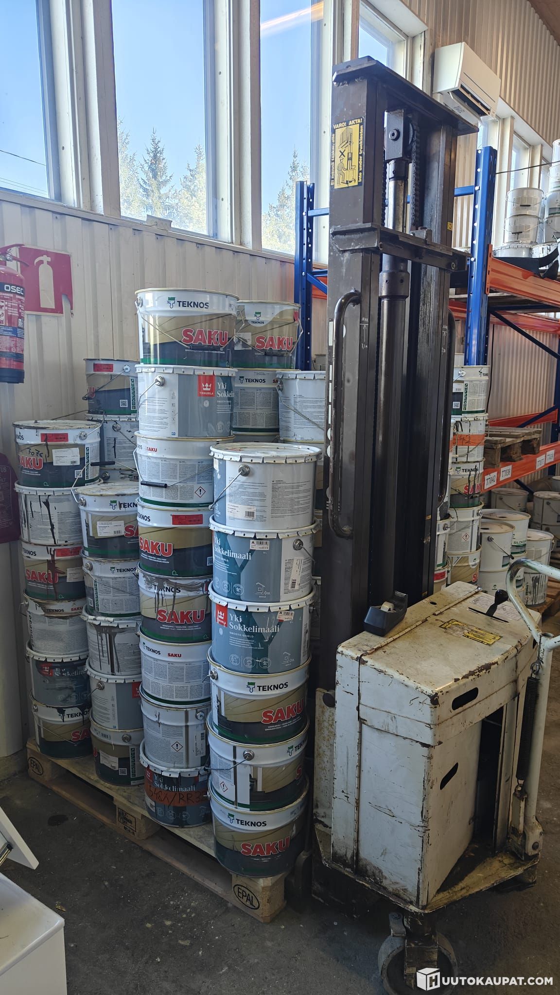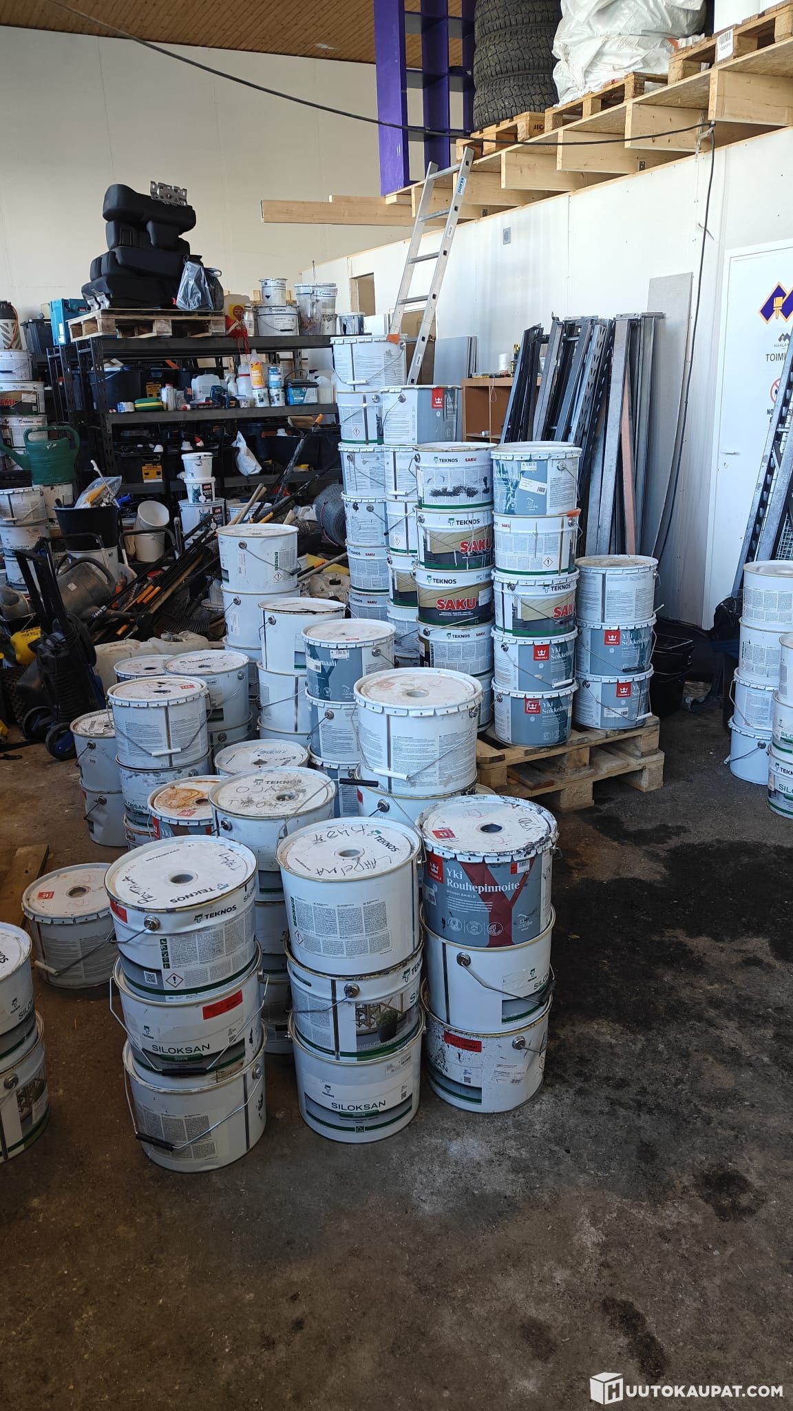 Myydään suuri erä sokkelimaaleja ja pinnoitteita, yhteensä arviolta noin 150 purkkia.