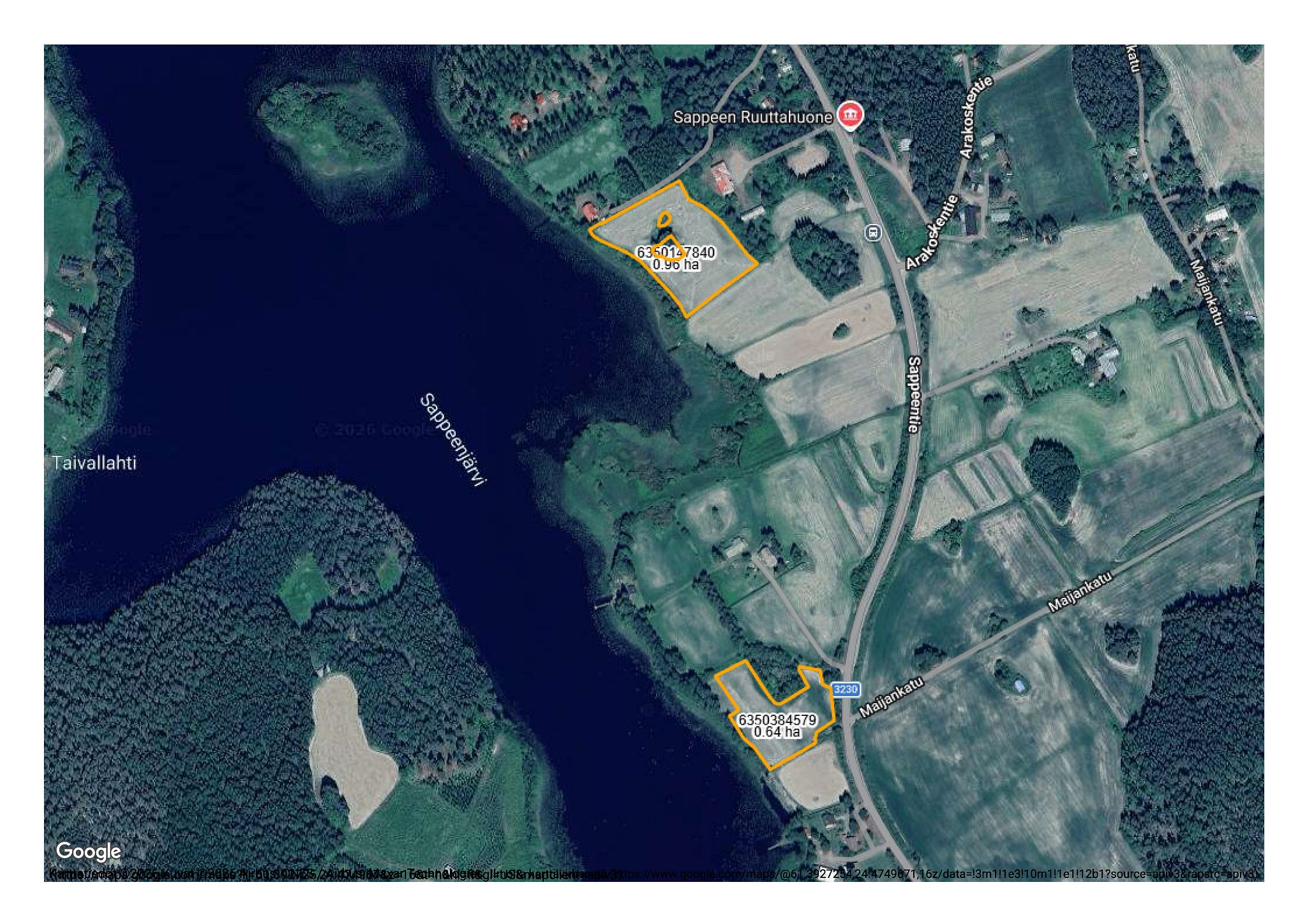 Pälkäneen kunta myy julkisella huutokaupalla kaksi peltoa Sappeen kylästä Sappeenjärven rannalta.