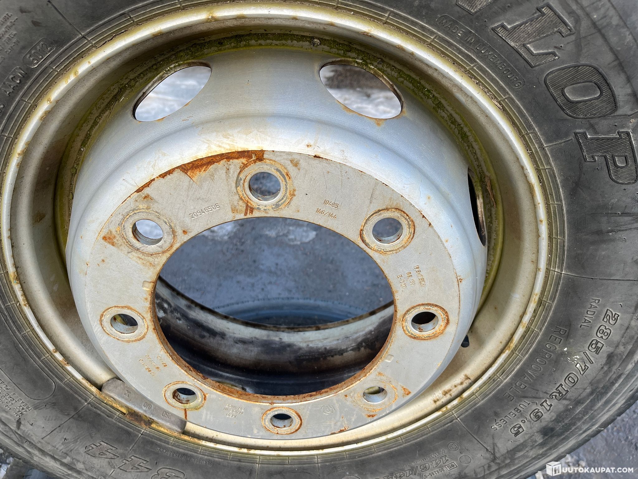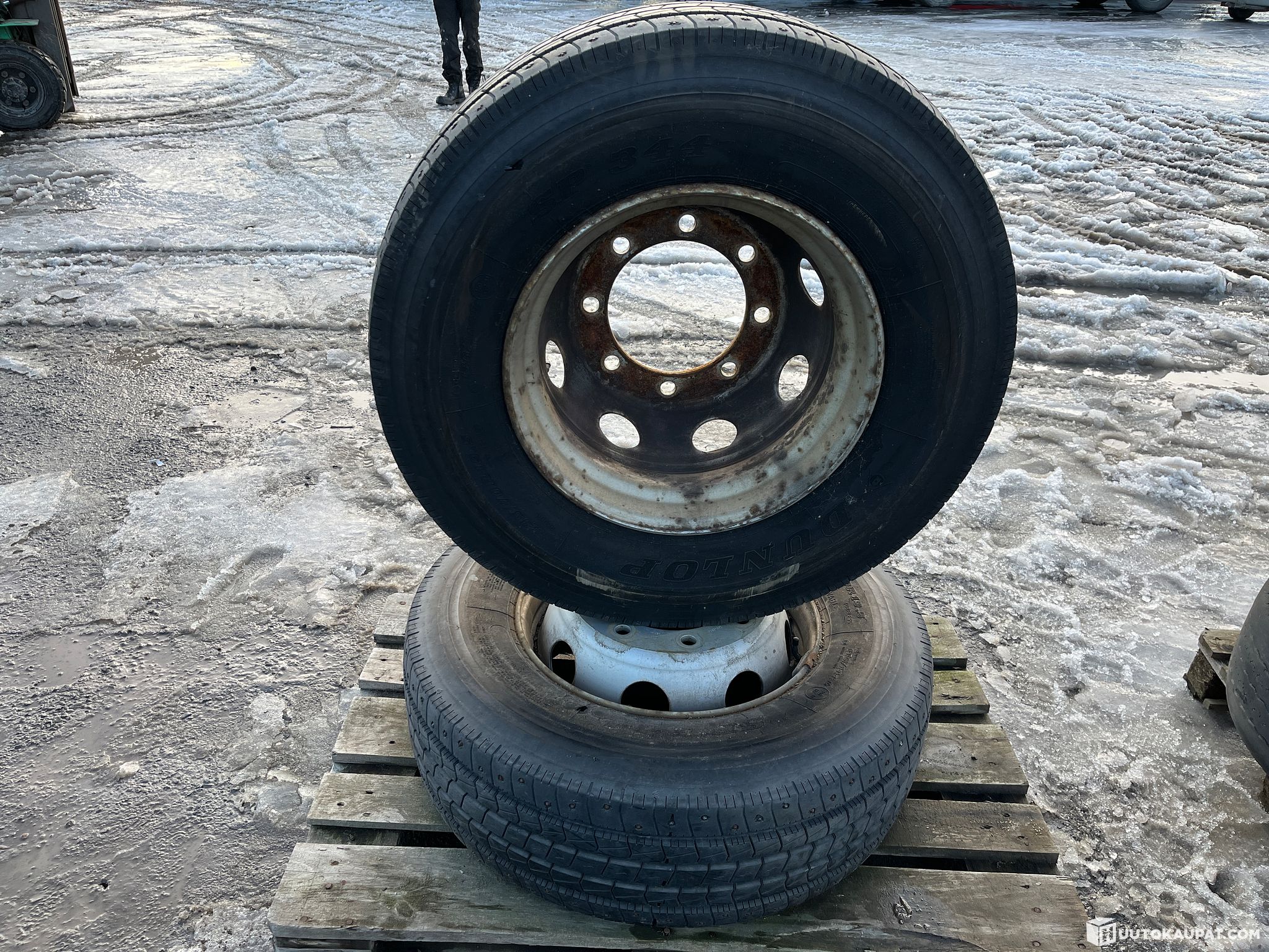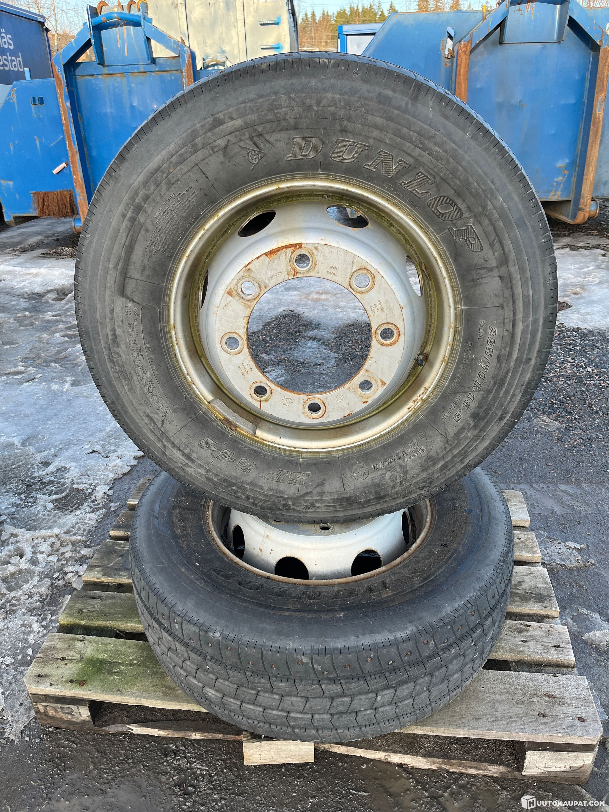 Dunlop vanteilla, nastoilla, 2 kpl. 285/70R19.5. Ollut volvossa.