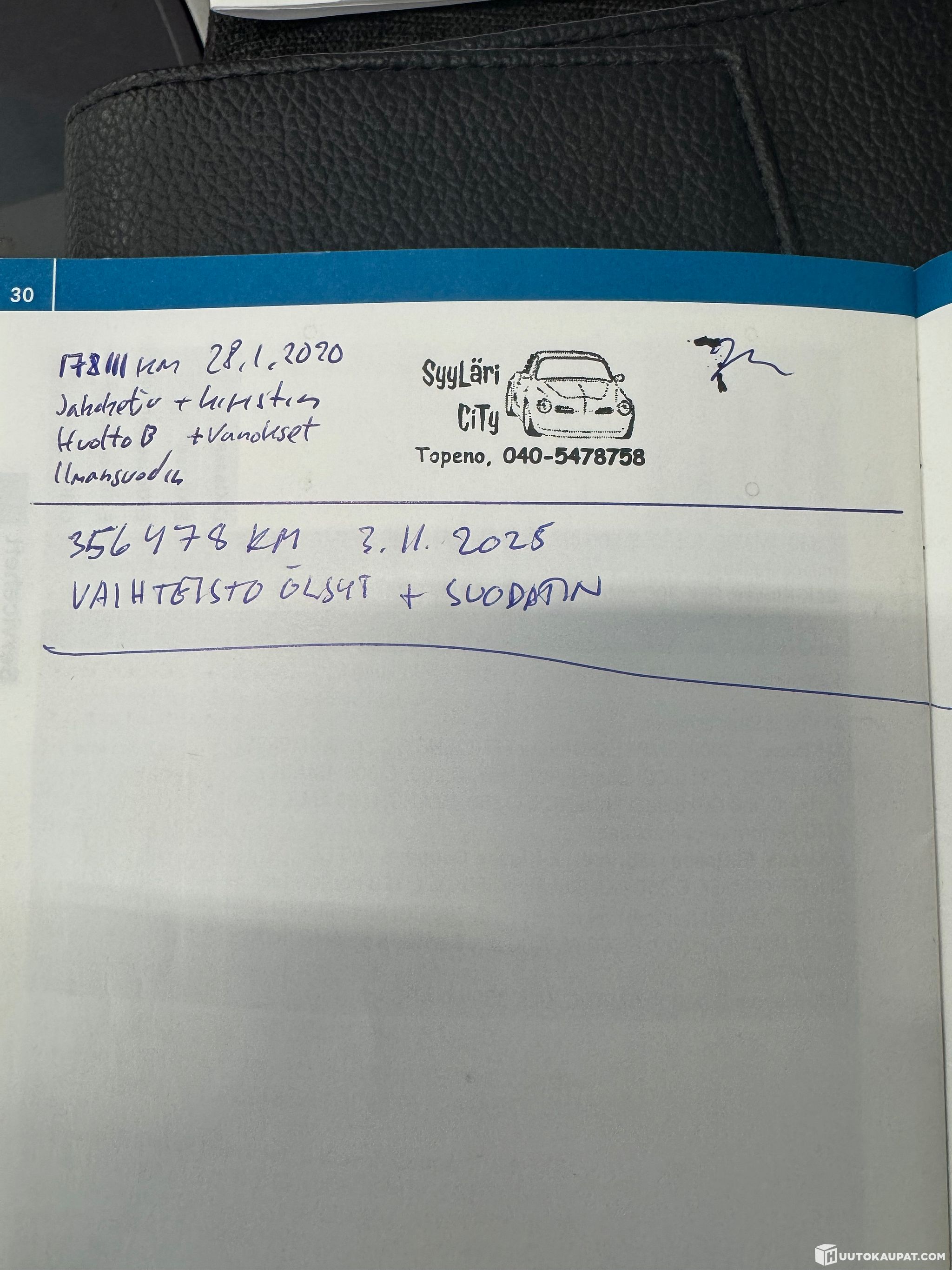 -Huoltokirja osittain sähköinen ja osittain paperinen, mutta sähköinen tuloste on.