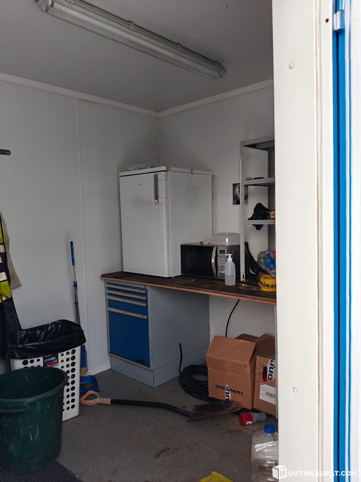 Tehdastekoinen merikonttiin tehty taukotila.