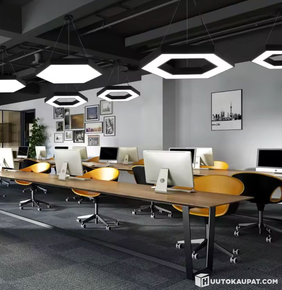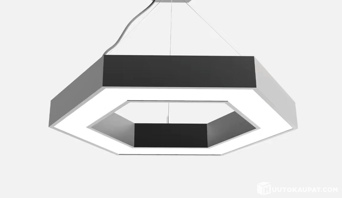 Myydään tyylikäs Hexagon LED-kattovalaisin (60 × 52,5 cm). Moderni kuusikulmainen design sopii erinomaisesti kotiin, toimistoon, myymälään, ravintolaan tai muihin tiloihin.