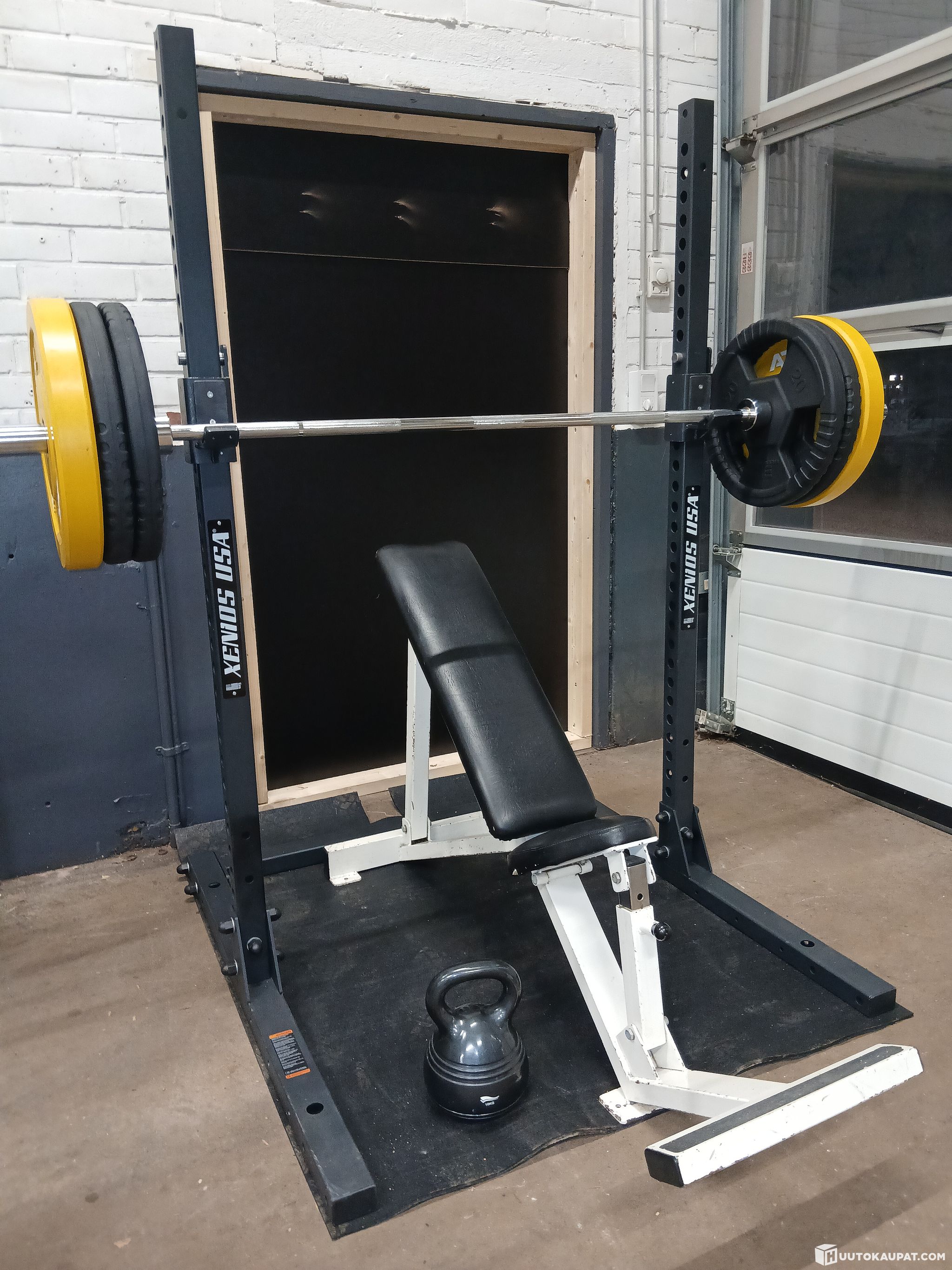 Uudenveroinen Xenios Usa Heavy Duty kyykkyteline, jämäkkä, koukkujen kantavuus 400kg/J-koukku.