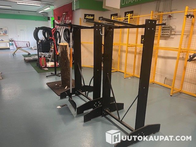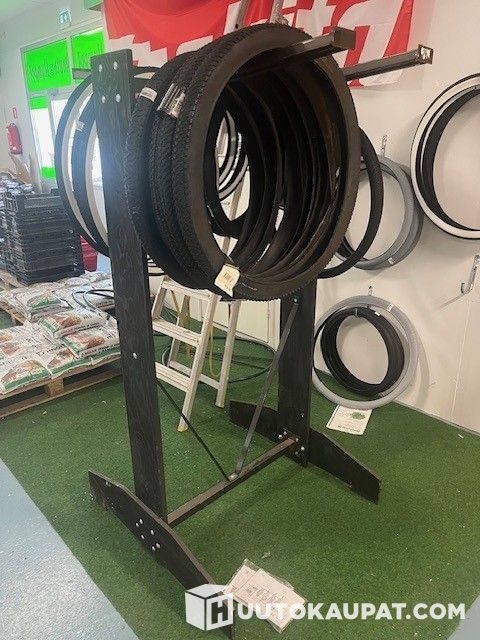 Kuvan mukaiset mustat telineet lumikolille yms. muille riiputettaville tuotteille.