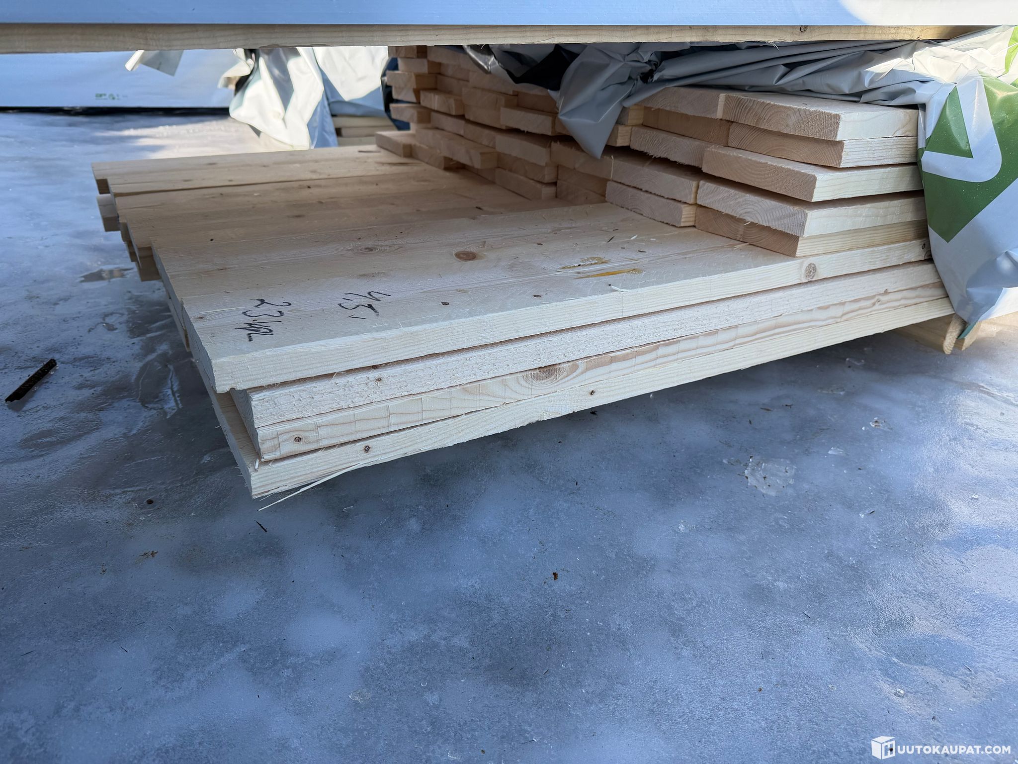 Monikäyttöistä sahatavaraa tehtaan paketissa.
