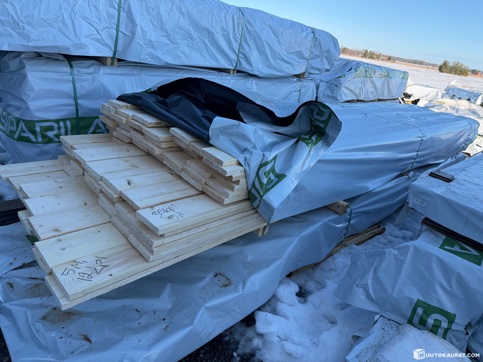 Monikäyttöistä sahatavaraa tehtaan paketissa.