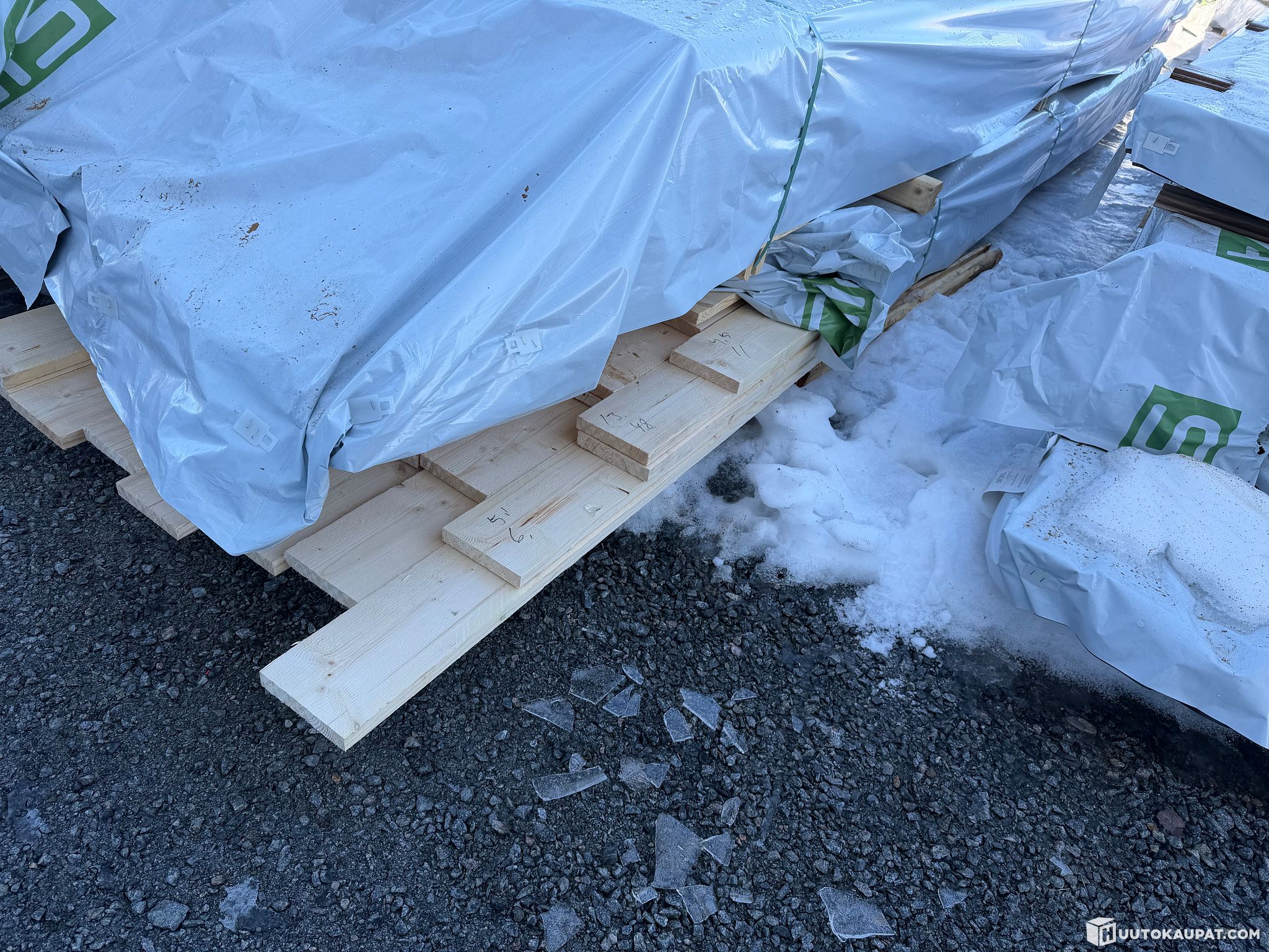 Monikäyttöistä sahatavaraa tehtaan paketissa.