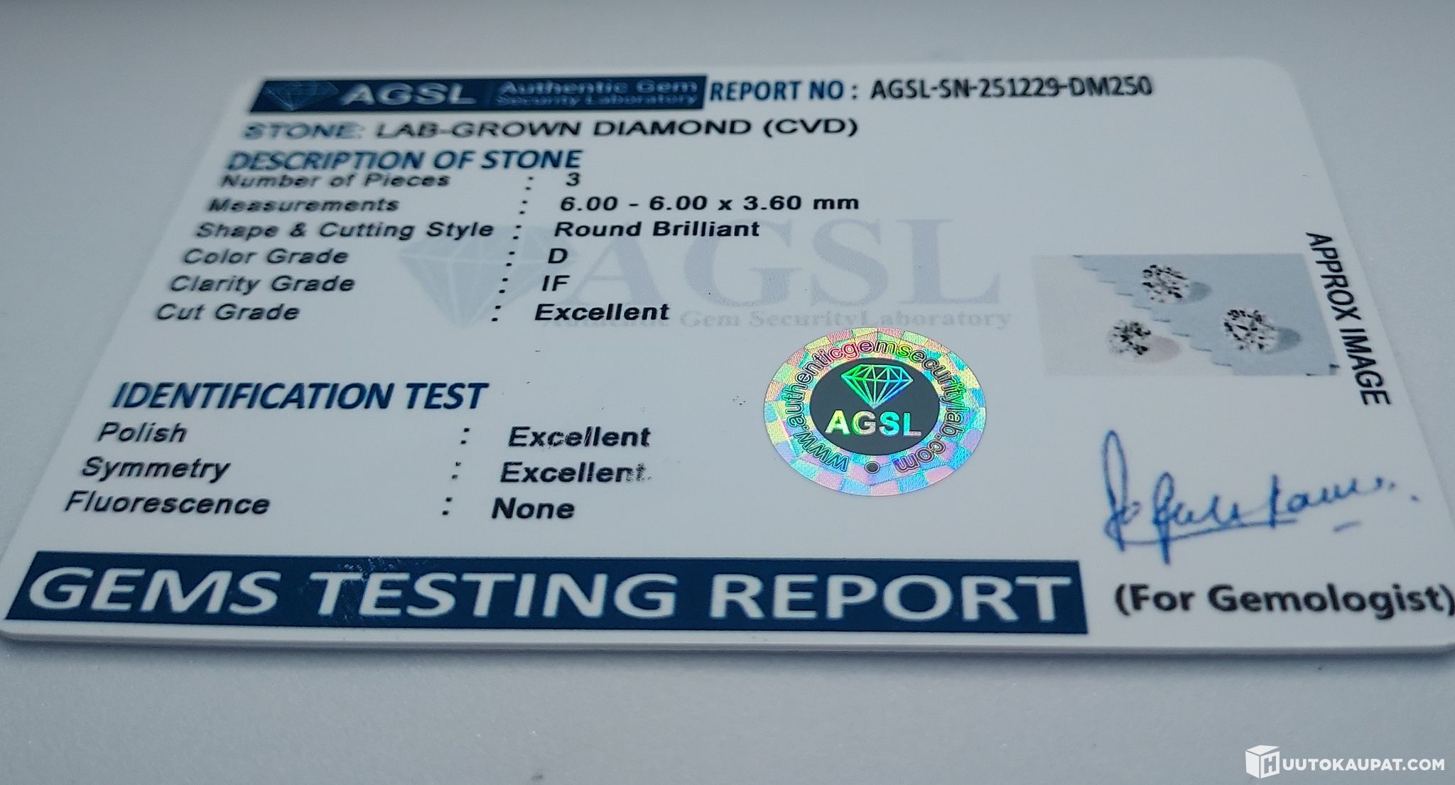 Osa isommasta sertifiointierästä. Mukana kopio aitoustodistuksesta.