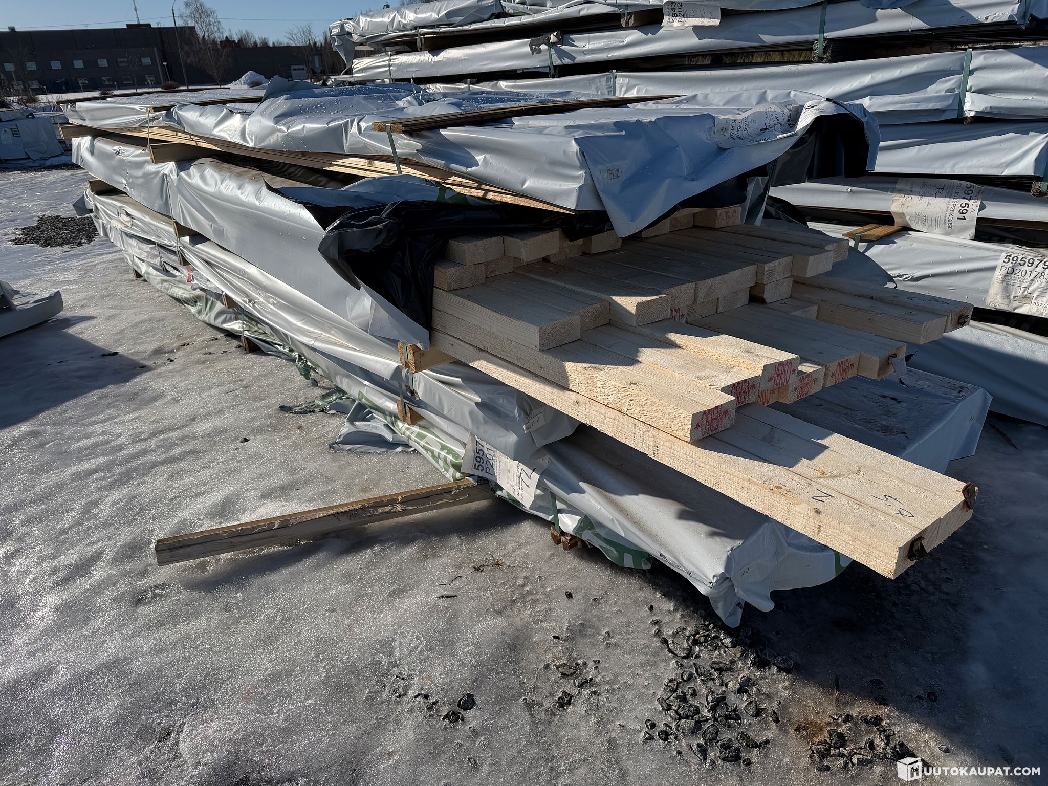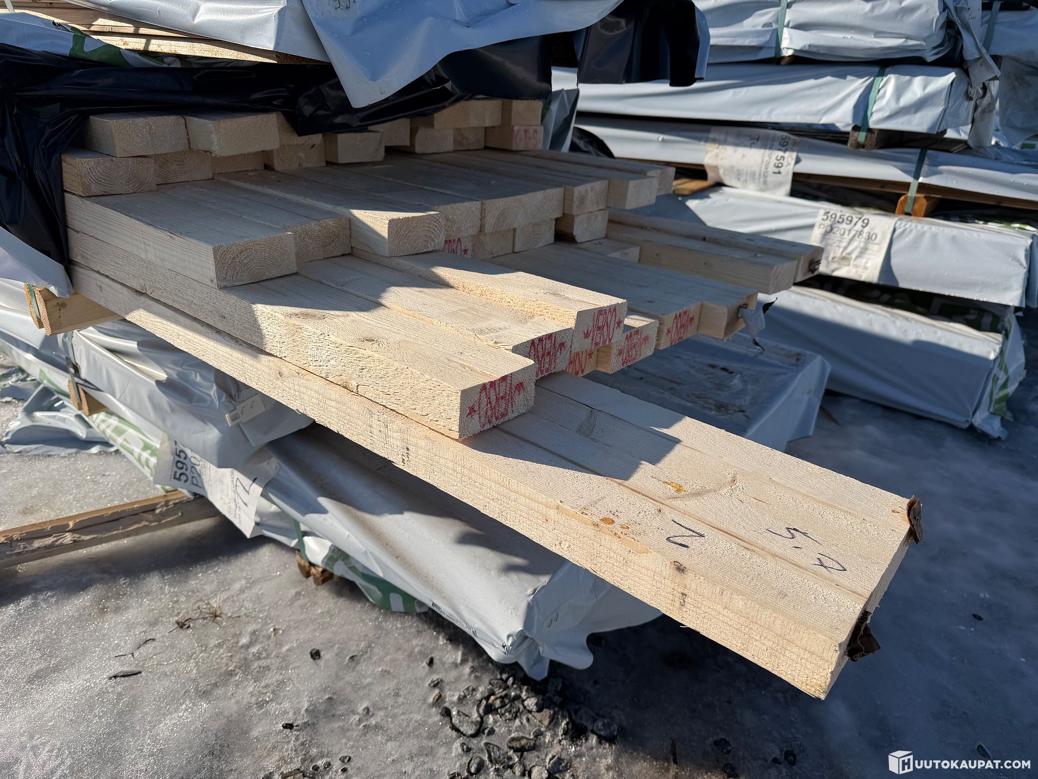 Monikäyttöistä sahatavaraa tehtaan paketissa.