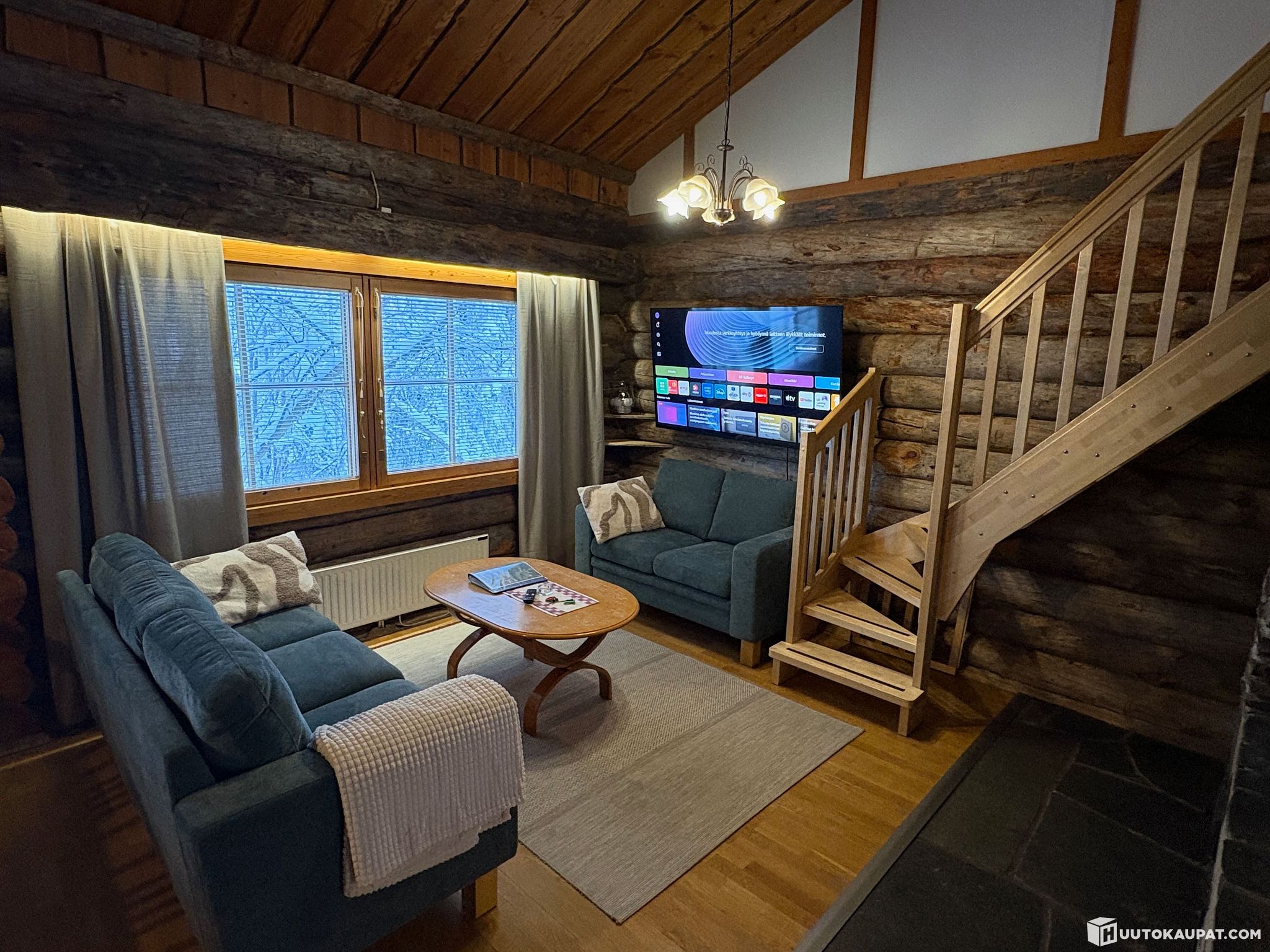 • Laadukas varustelu: 65" seinä-tv, kodinkoneet, kuivauskaappi, takkapuut, liinavaatteet ja astiastot sisältyvät vastikkeeseen.