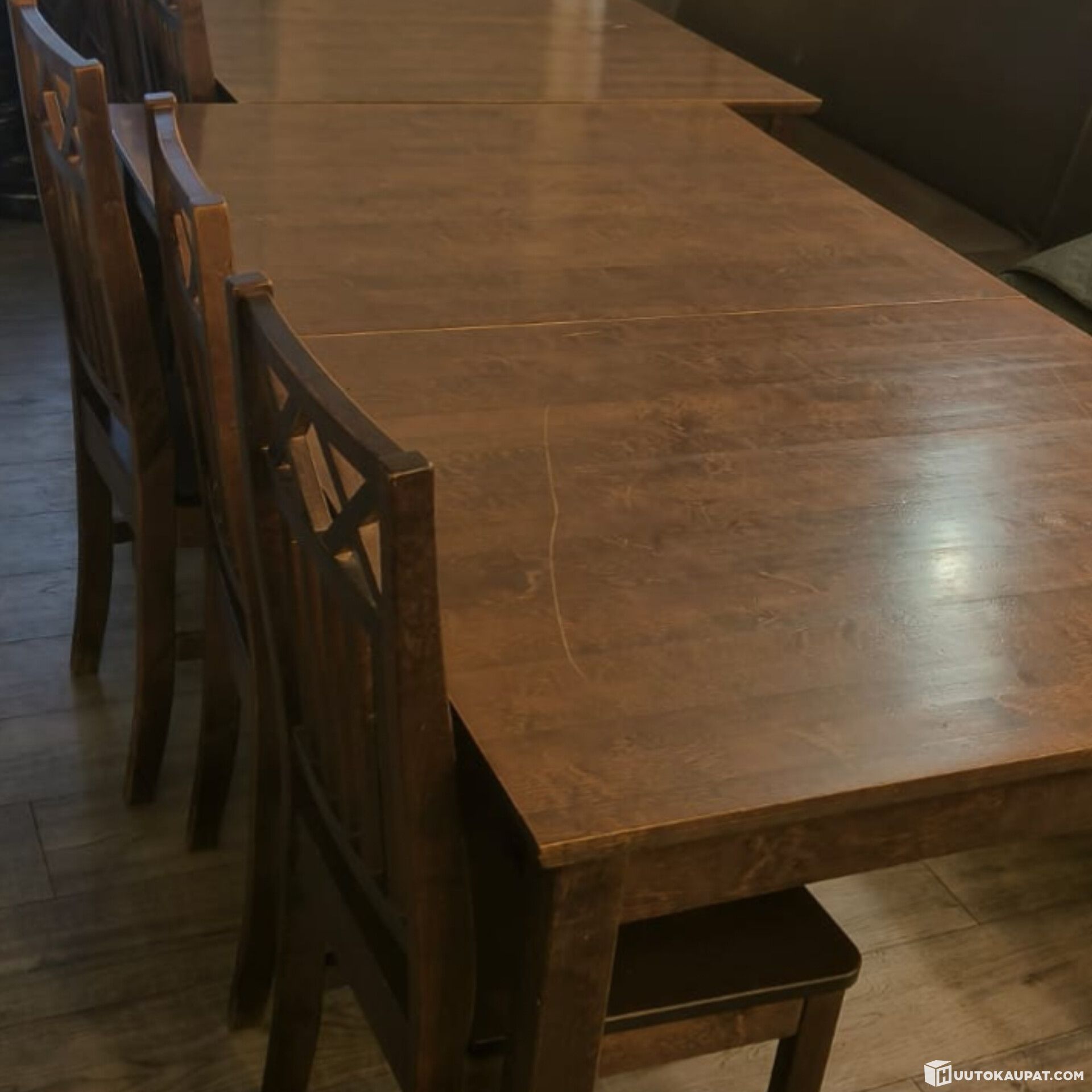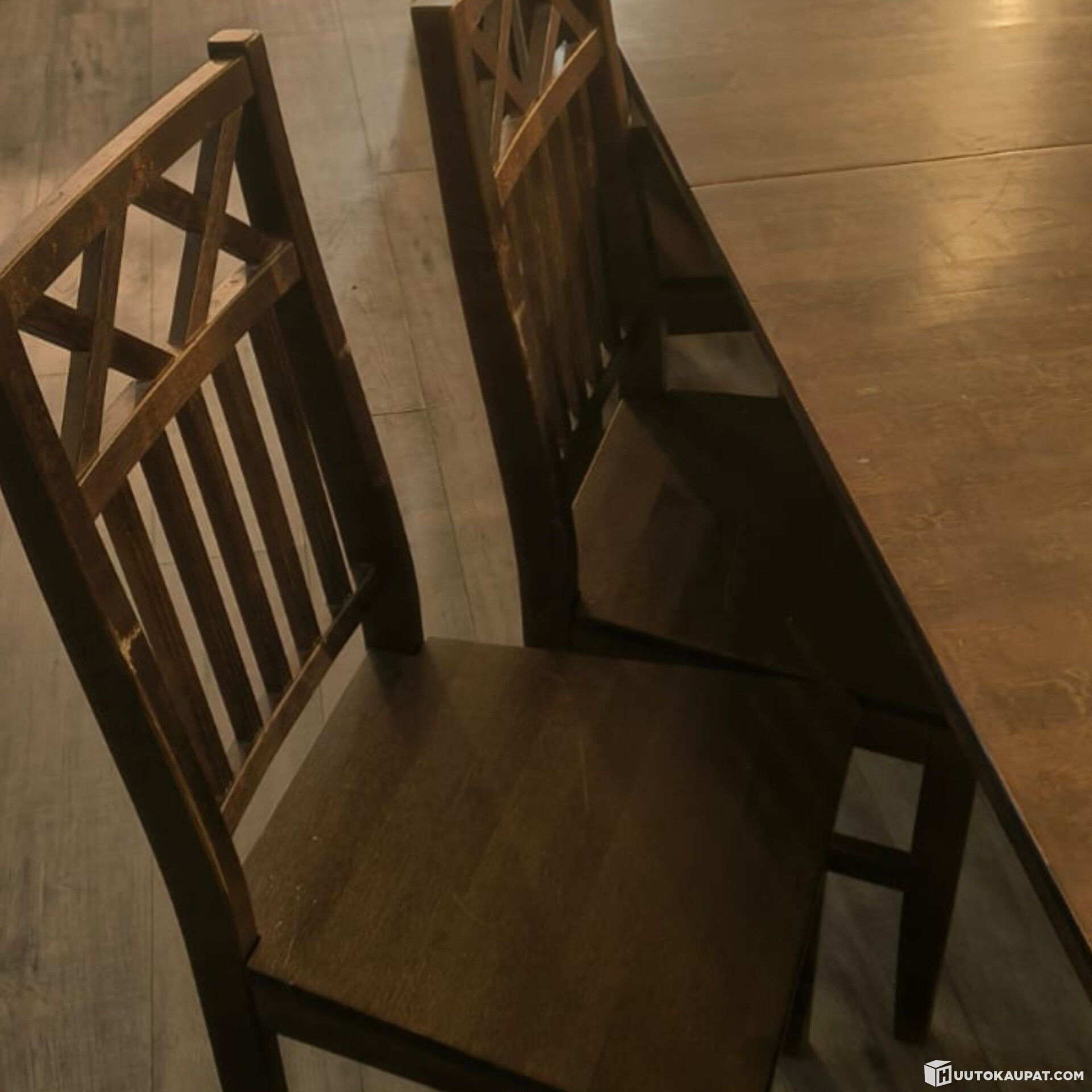 Pöydät ja tuolit ovat käytettyjä ja niissä voi olla pieniä naarmuja.