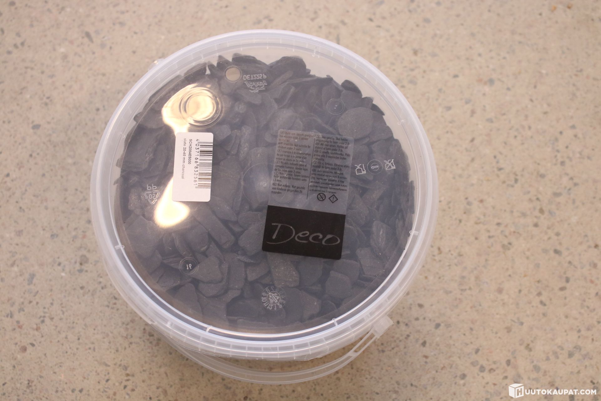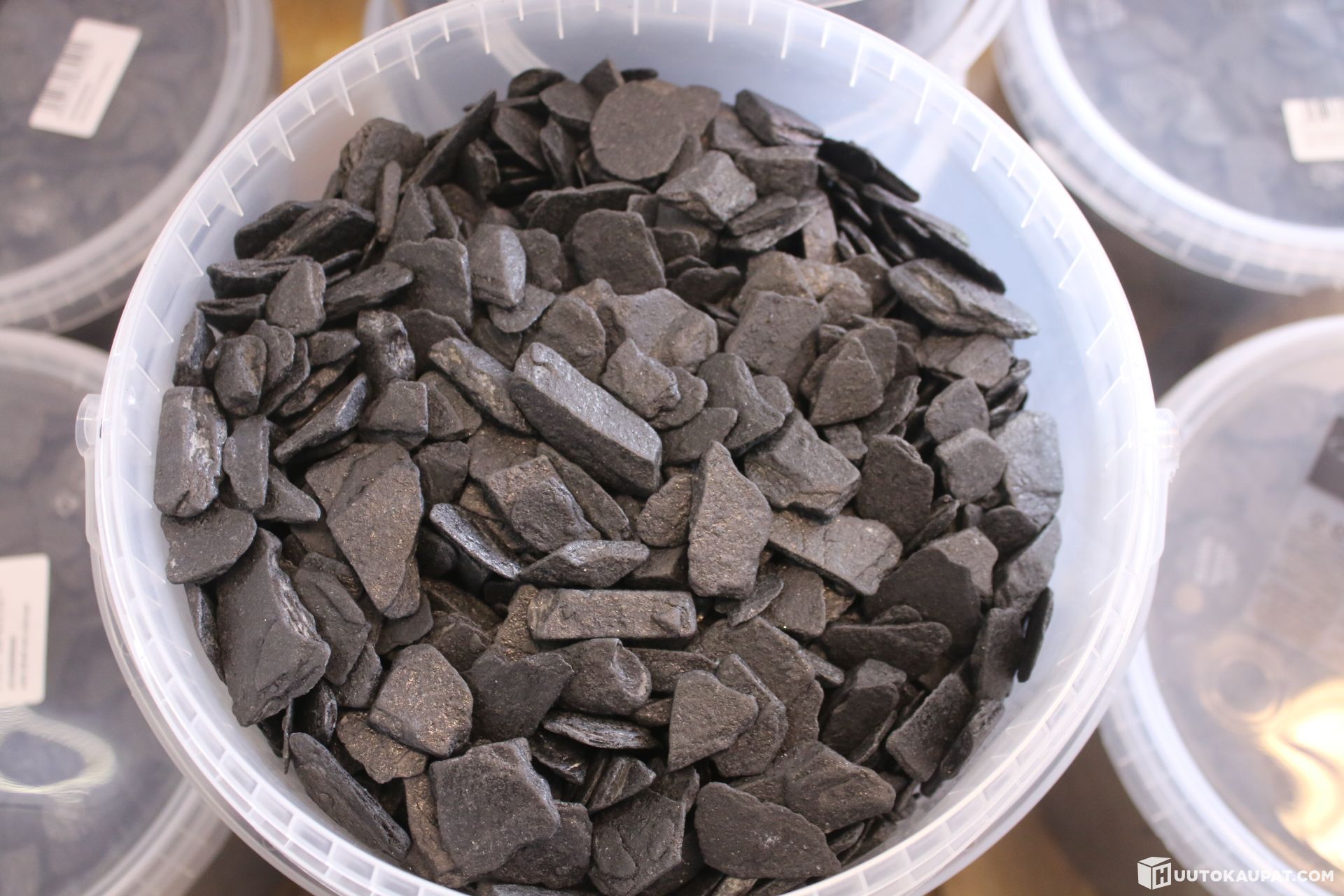 Deco, hiilen värinen liuskekivimurske. 26 ämpäriä. Sopii erinomaisesti puutarhaan tai pihatien reunuksille.