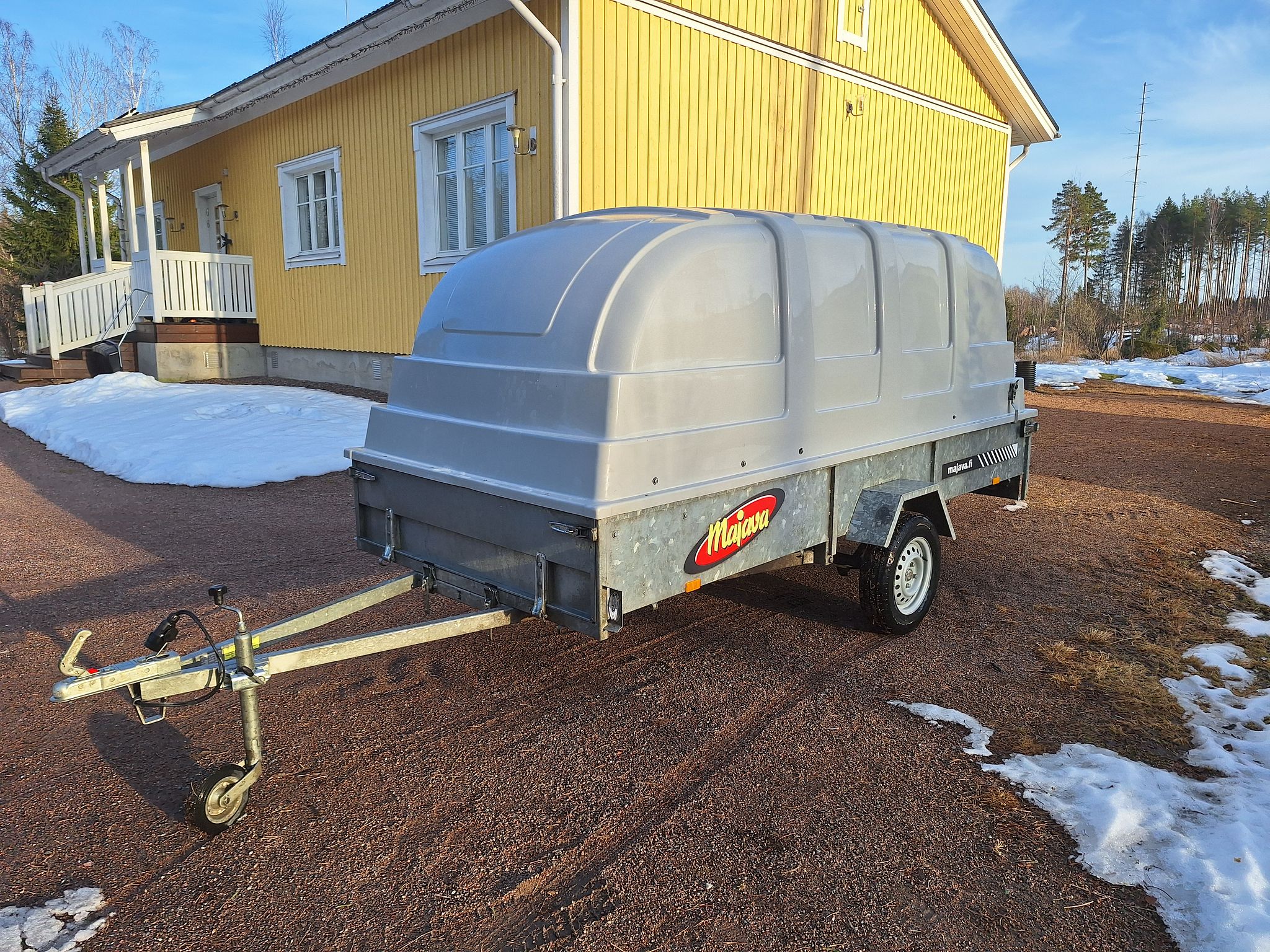 Kotimainen Majava M2226LJ Classic peräkärry lavakoko 122cm x 263cm , laitakorkeus 23cm , irroitettavat päädyt .