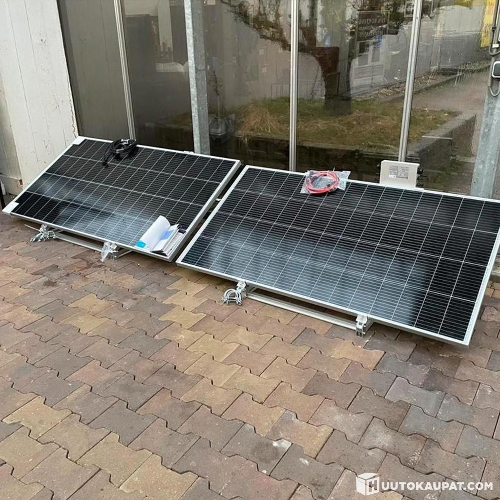 Parvekkeen aurinkopaneelisetti 600 W - sisältää: invertterin, telineet, johdot - "Plug & Play" - KOTIINTOIMITUS