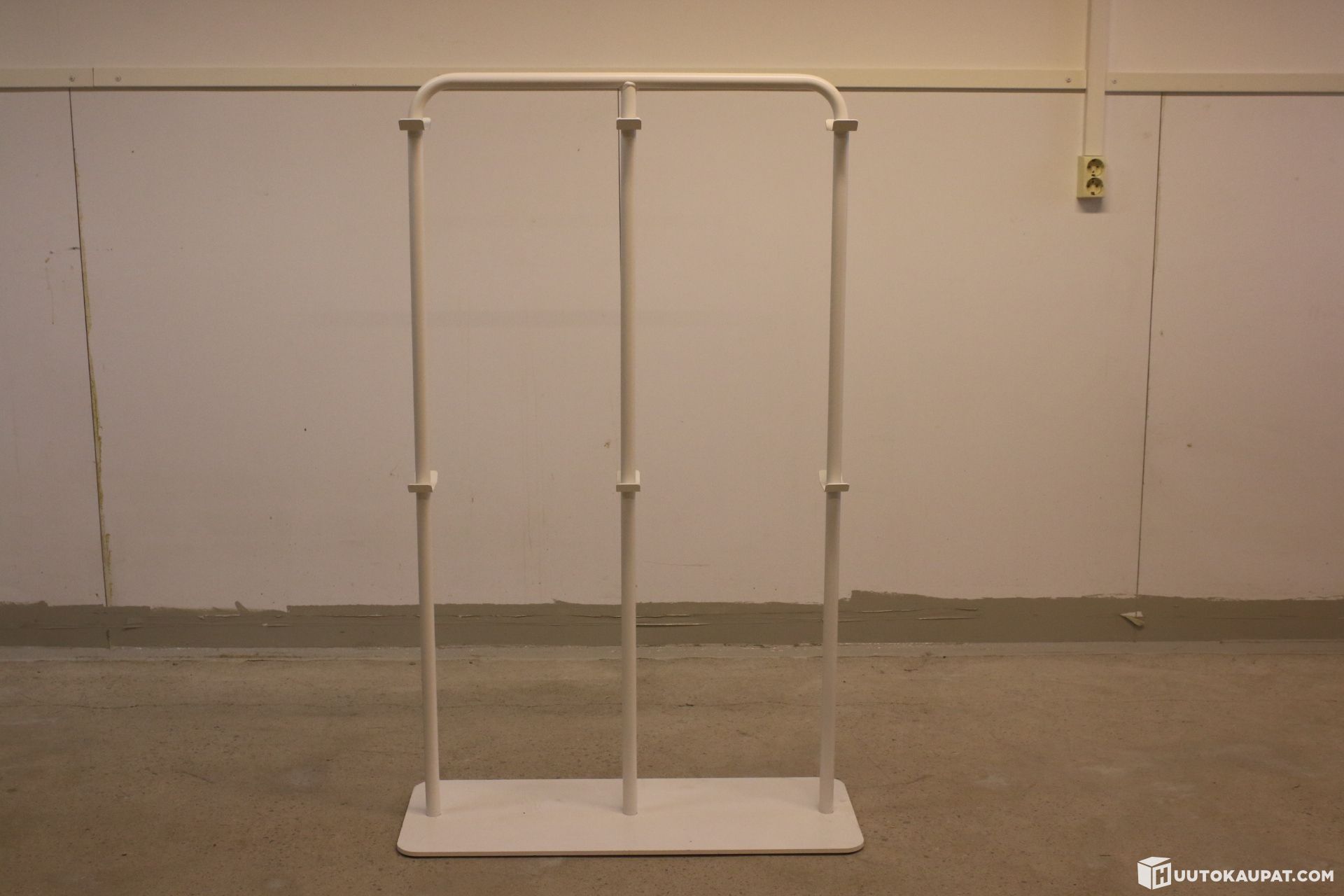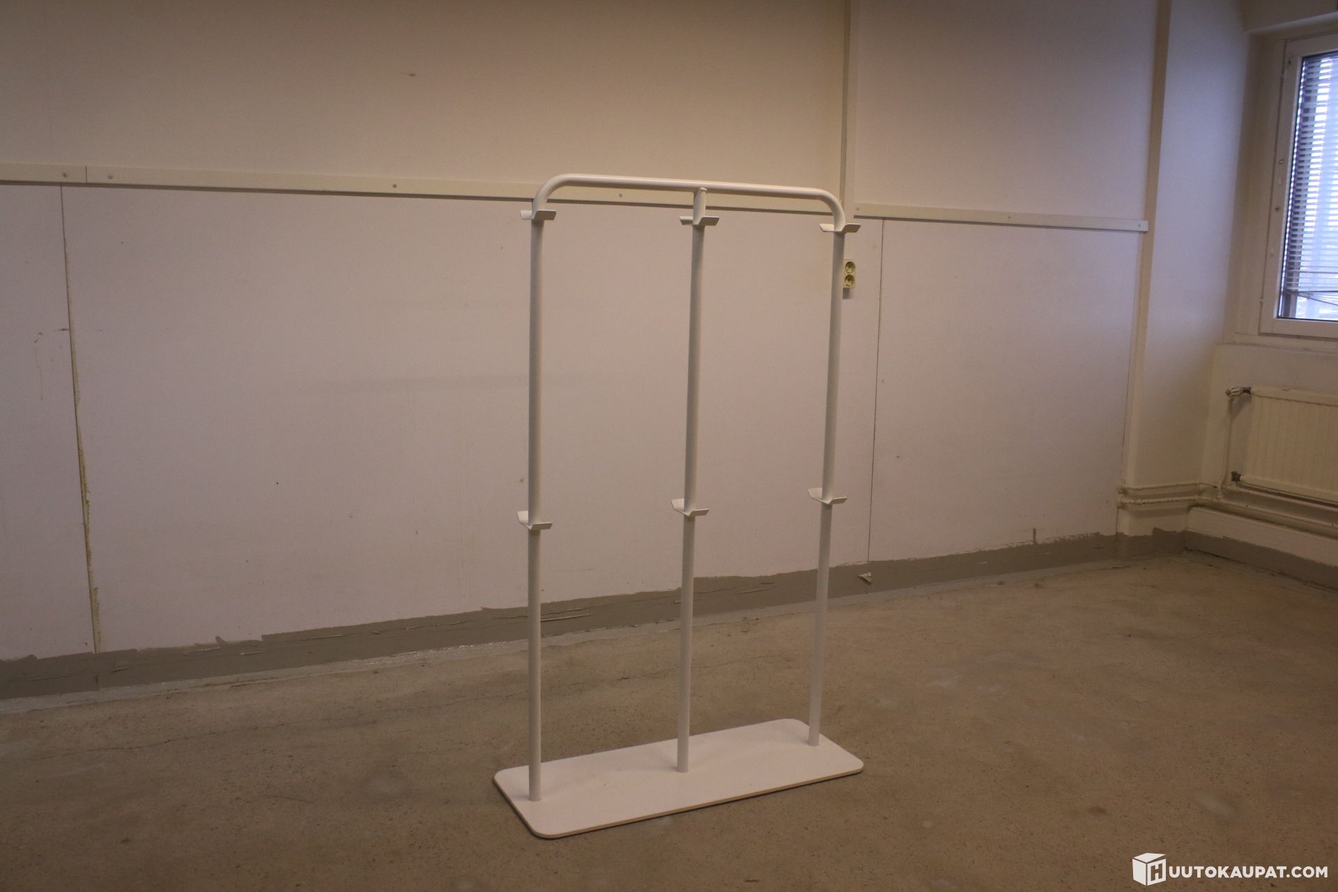 Valkoinen laukkunaulakko. Tukeva, teräksinen.