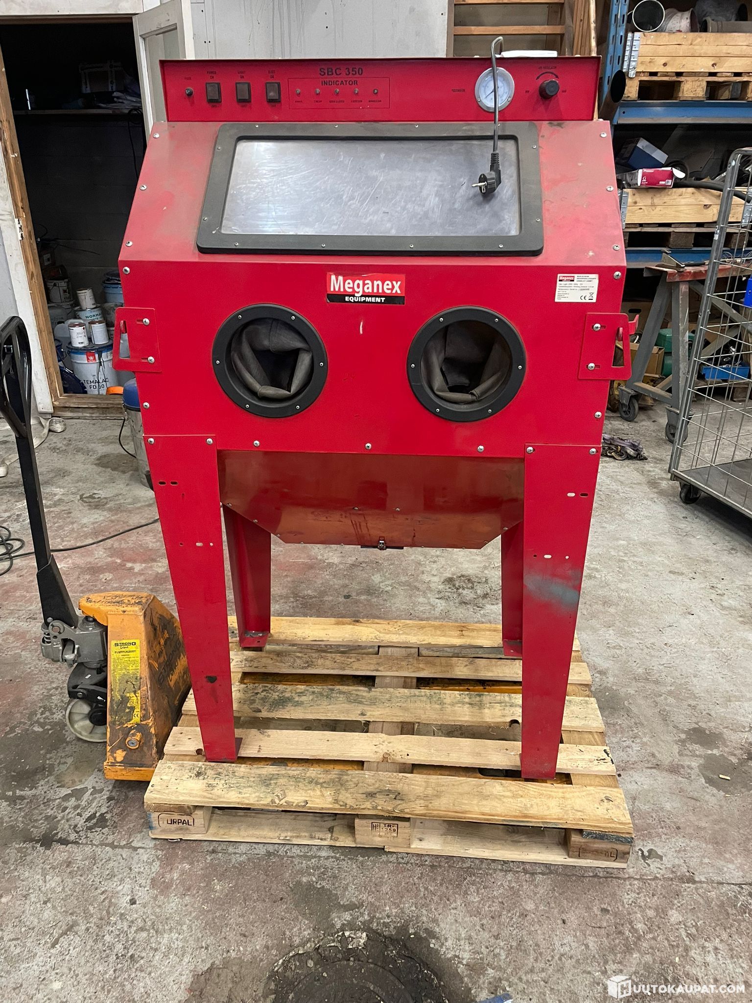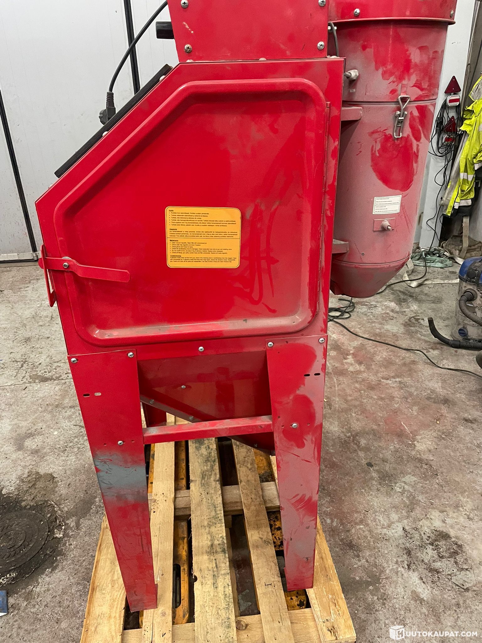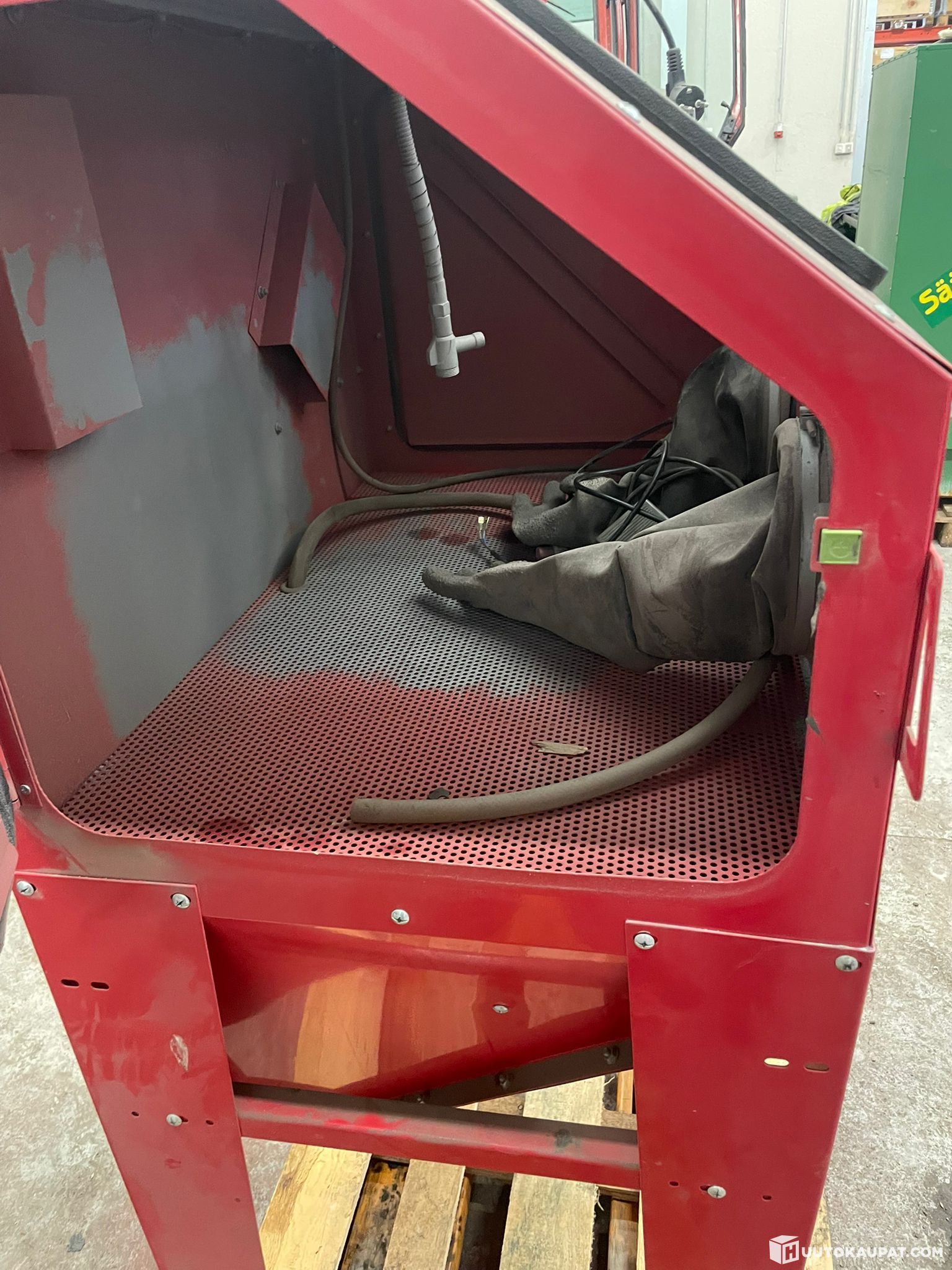 Myydään käytöstä poistettu. Hieno melkein ferrarin punainen hiekkapuhalluskaappi. Nostetaan kyytiin noudettaessa