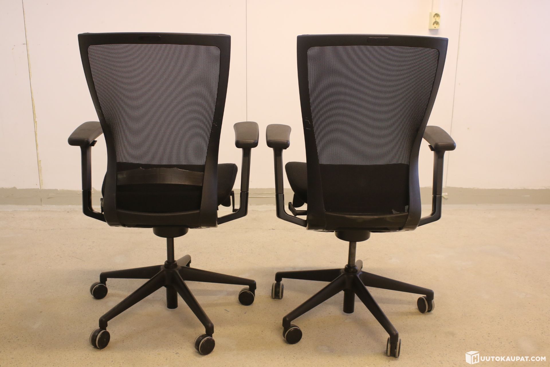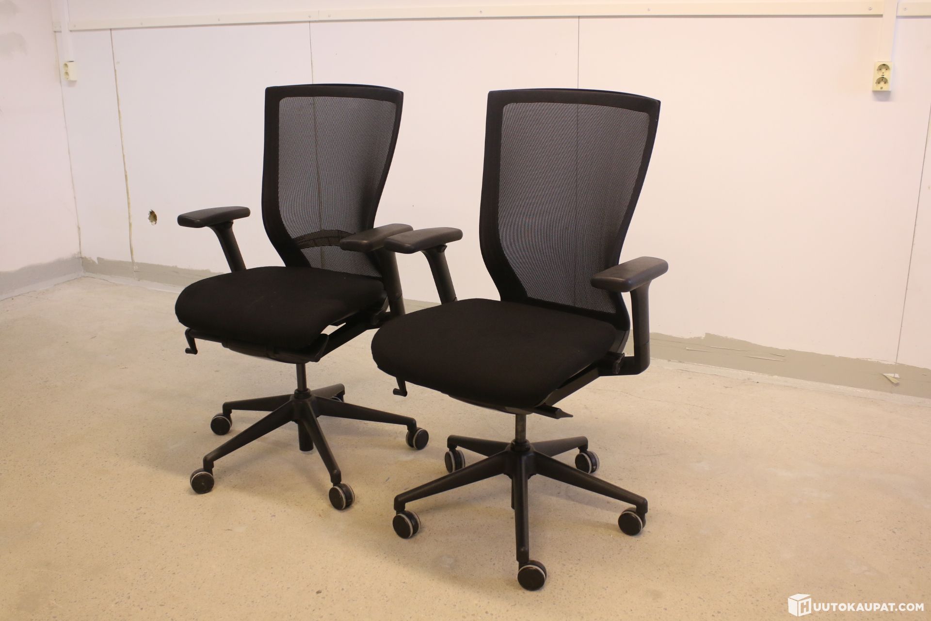 Kaksi kappaletta mustia työtuoleja.