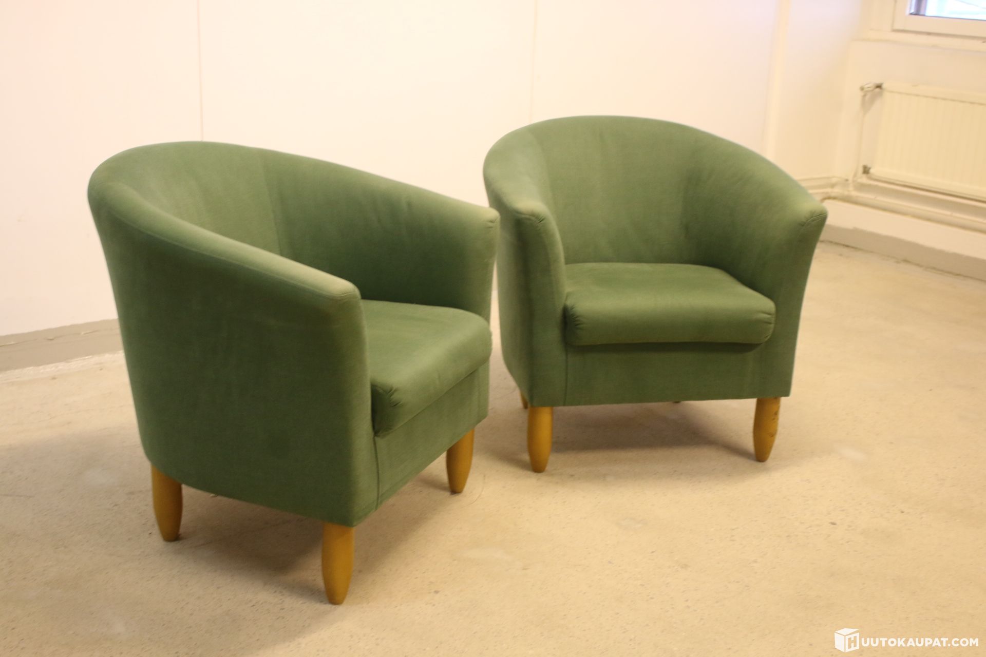 Kaksi kappaletta hyväkuntoisia nojatuoleja.