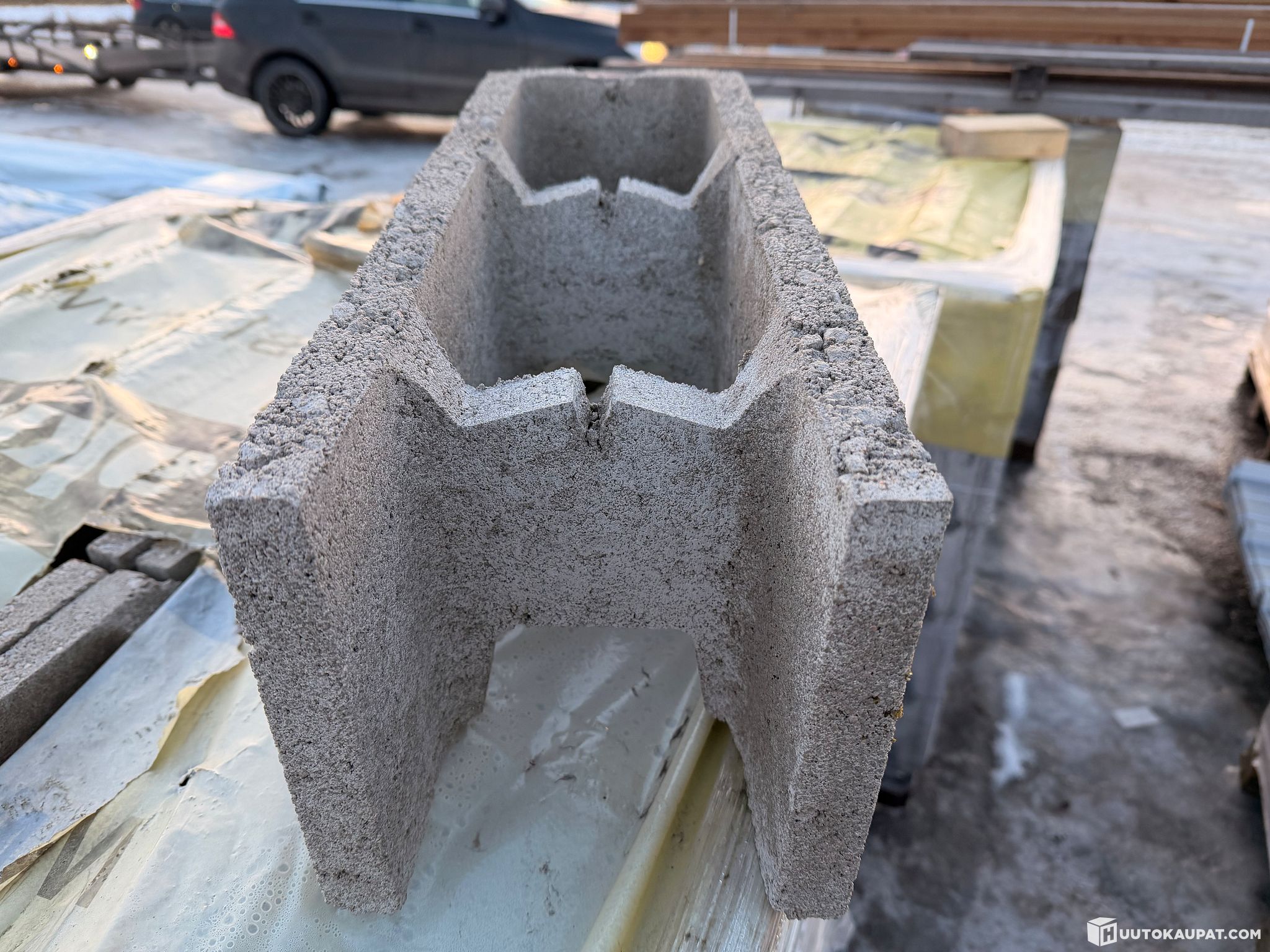 • harkkobetonin kuivatiheys: 2200 kg/m³ Kulmiin ja päätyihin lavalla on 10 kpl ponttaamattomia päätyharkkoja, joten kulmaharkkoja ei tarvitse laskea erikseen. Päätyharkot käyvät myös suoriin seiniin, jolloin ei myöskään synny materiaalihukkaa.
